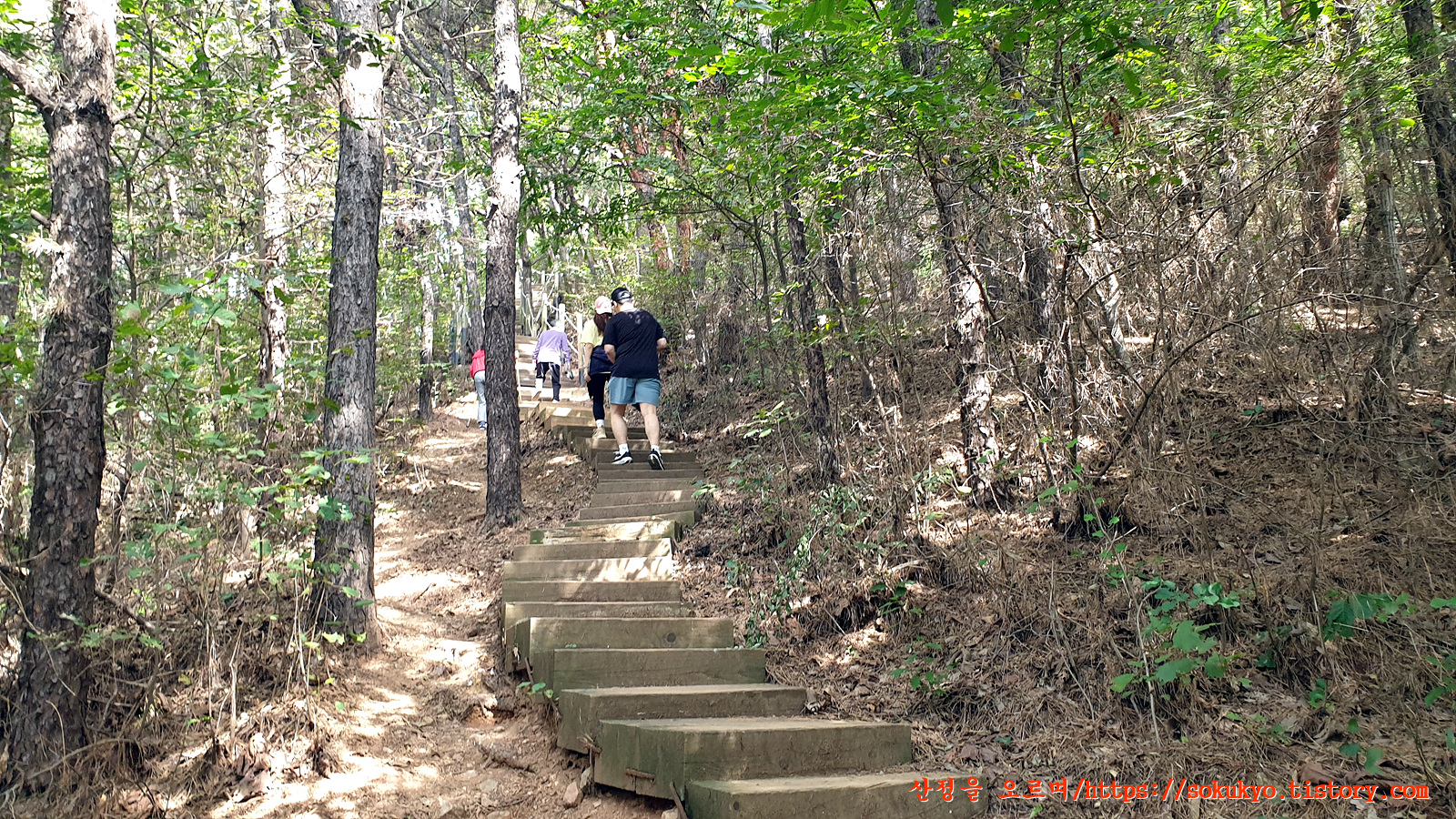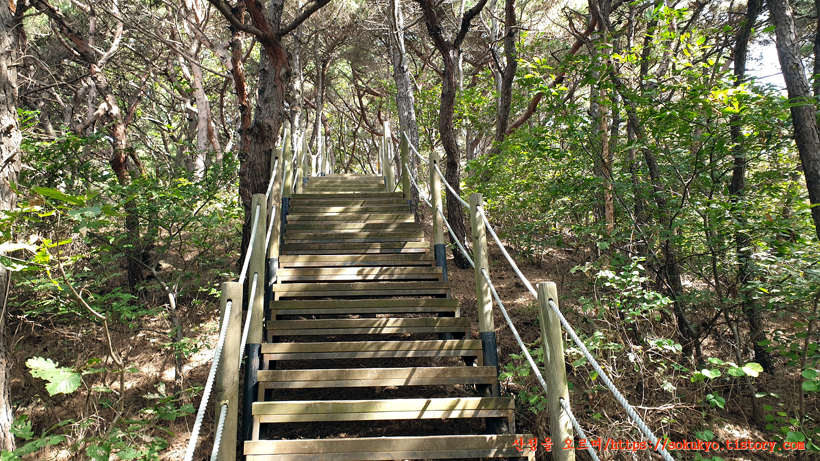 계속해서 이어지는 급경사 나무계단길....