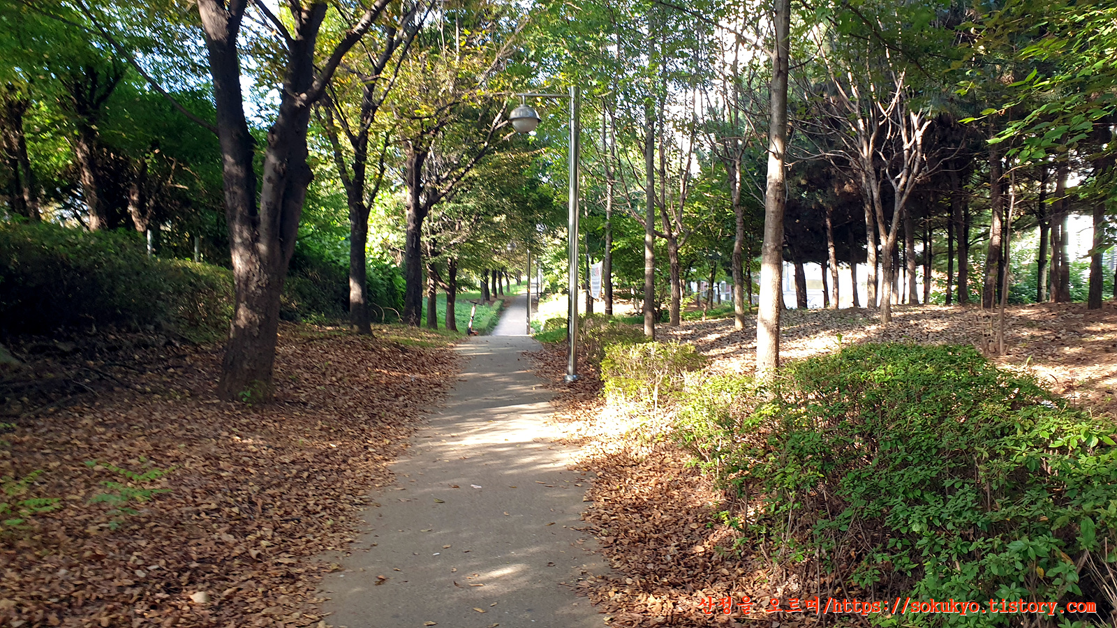 검단힐스테이4차 아파트 앞의 소공원 산책로를 지나고
