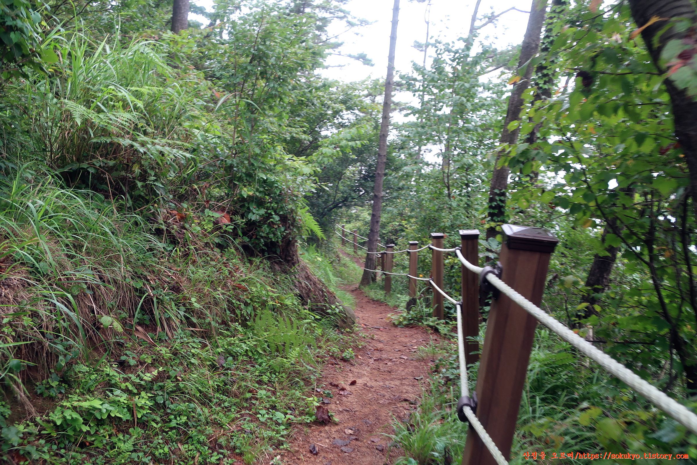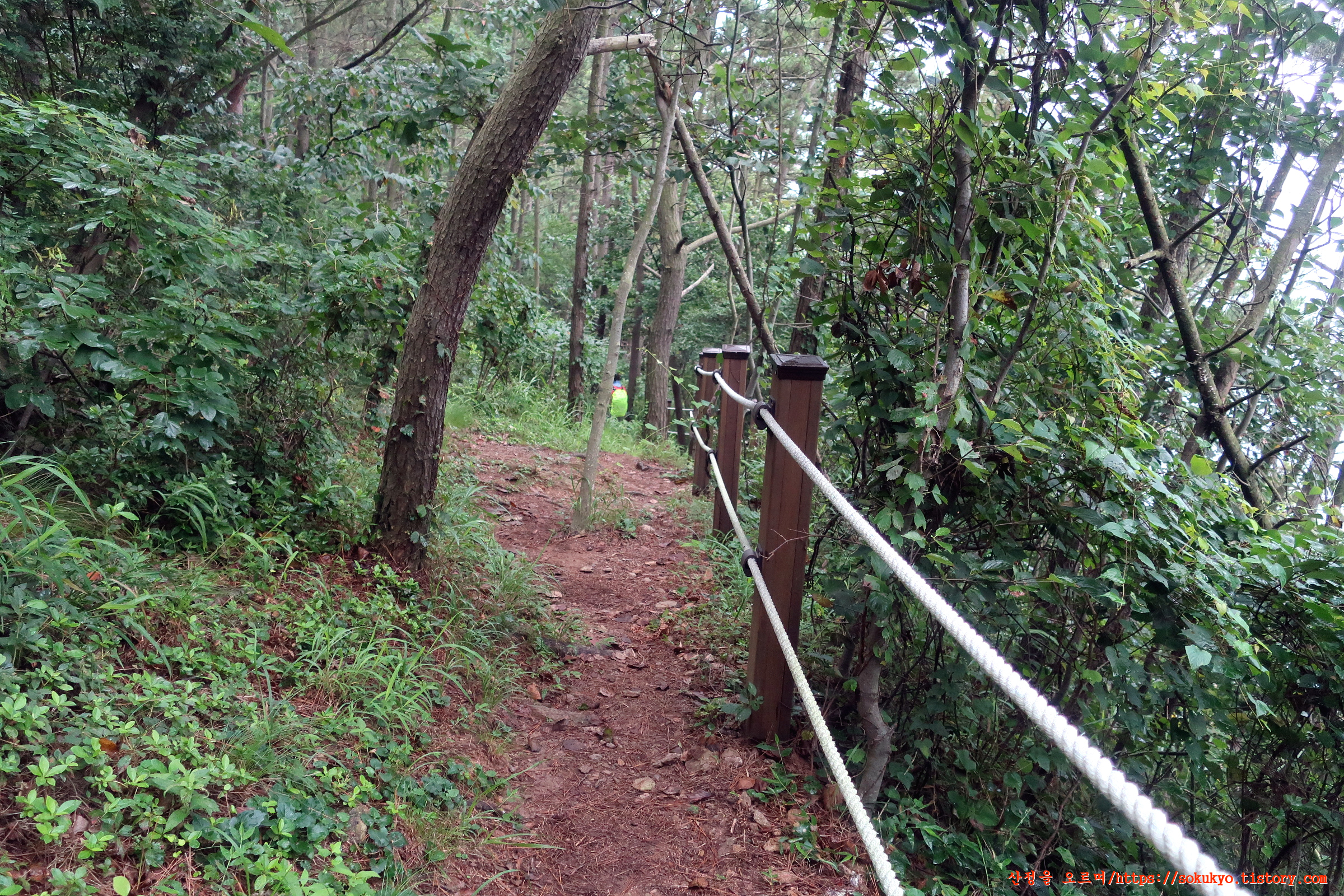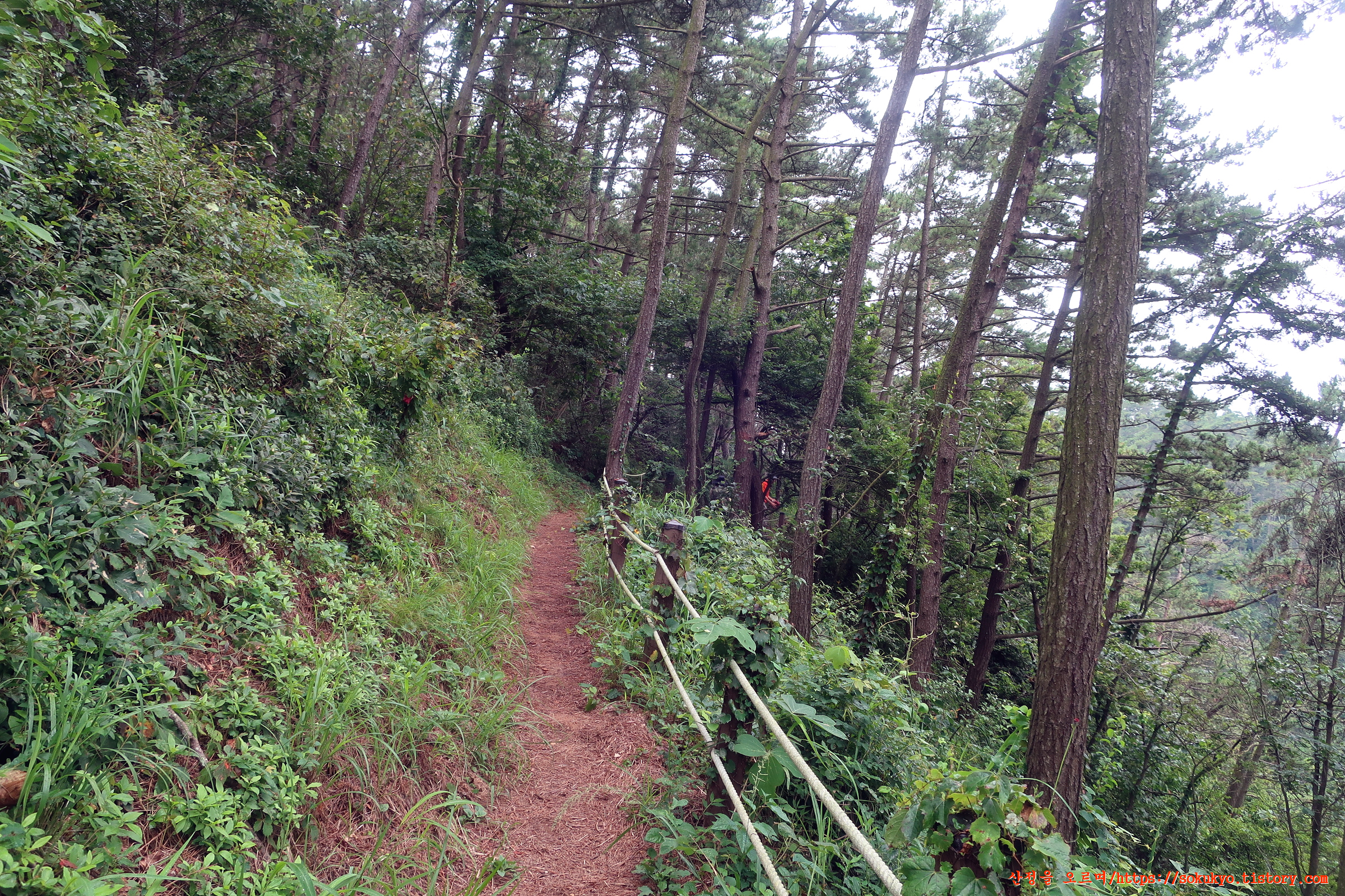 가드레일로프가 매어져 있는 산길을 오르내립니다.