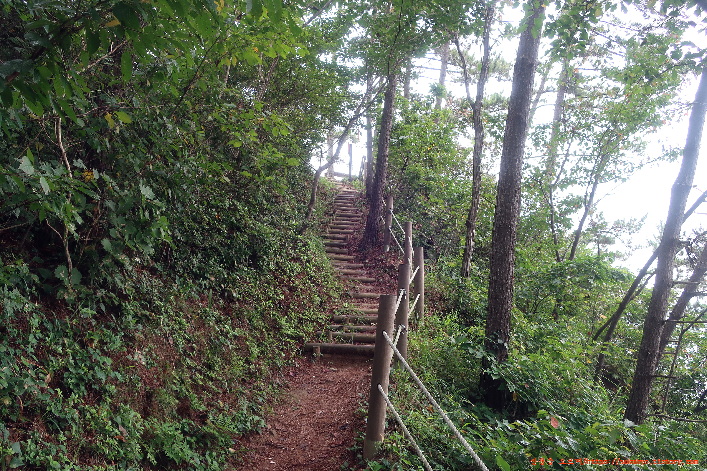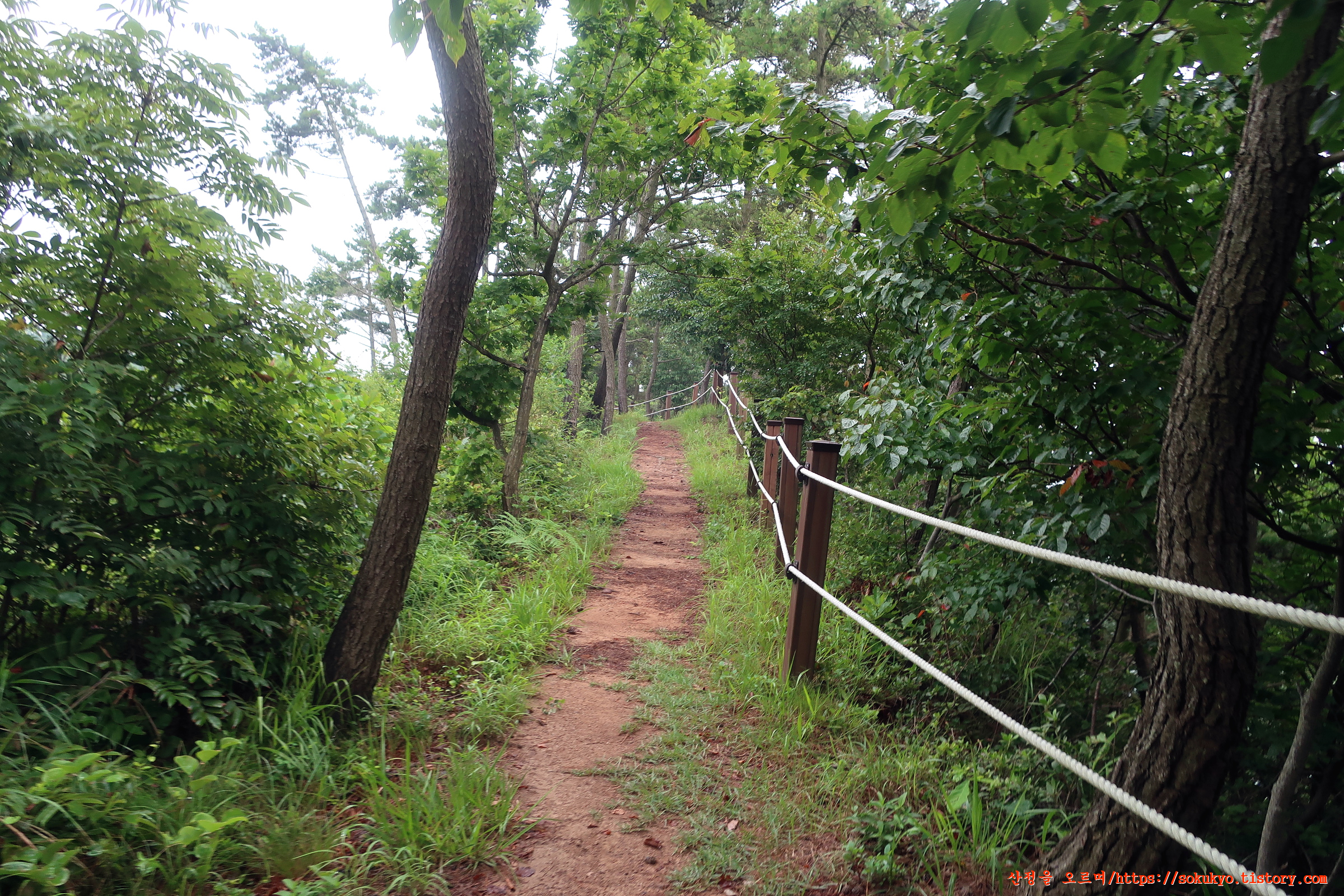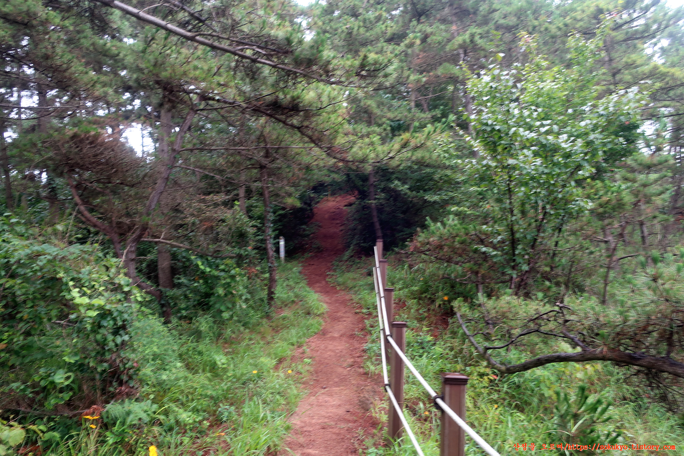 가드레일로프가 매어져 있는 산길을 오르내립니다.