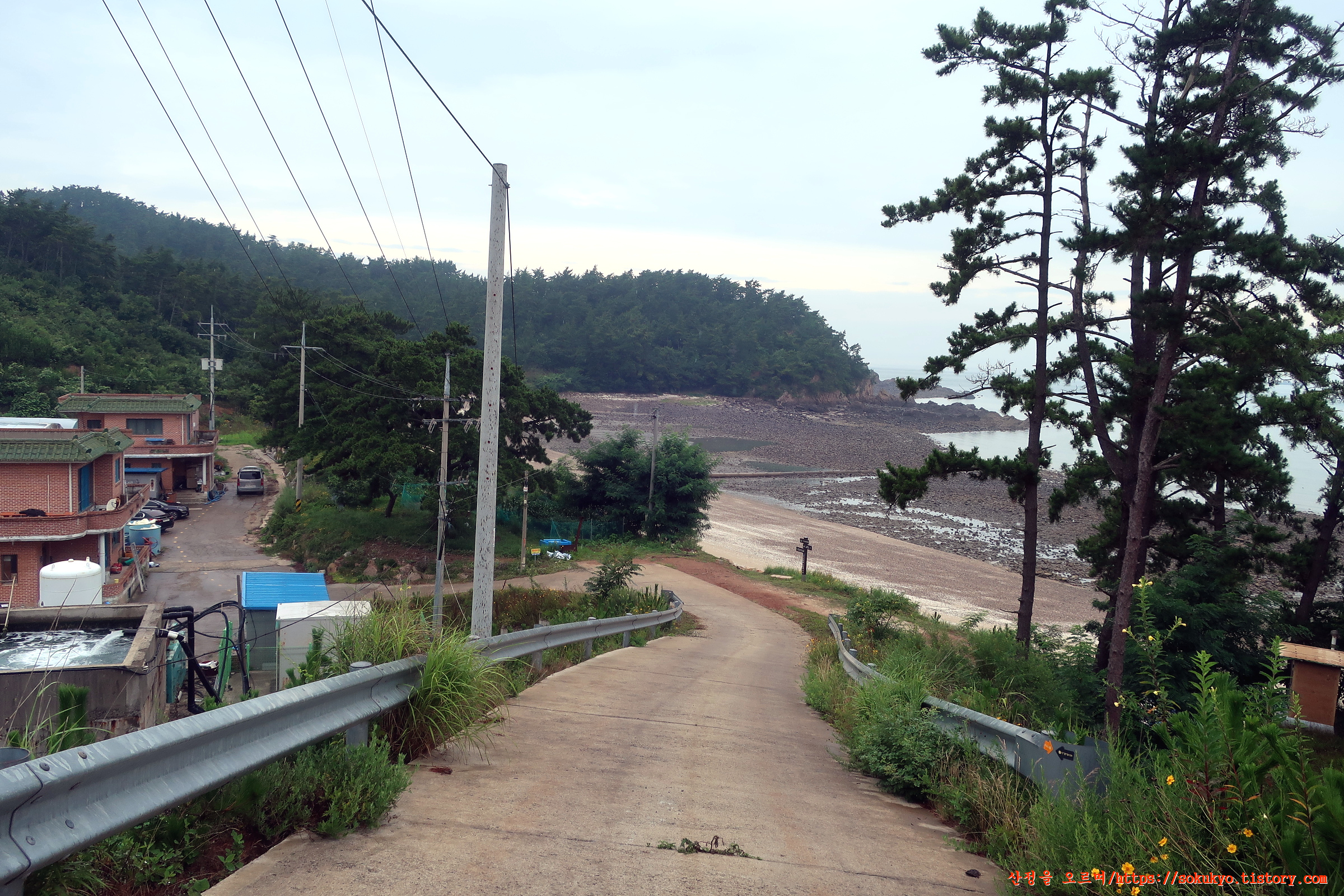 한국수산이 자리하고 있는 근욱골해변으로 내려섭니다.