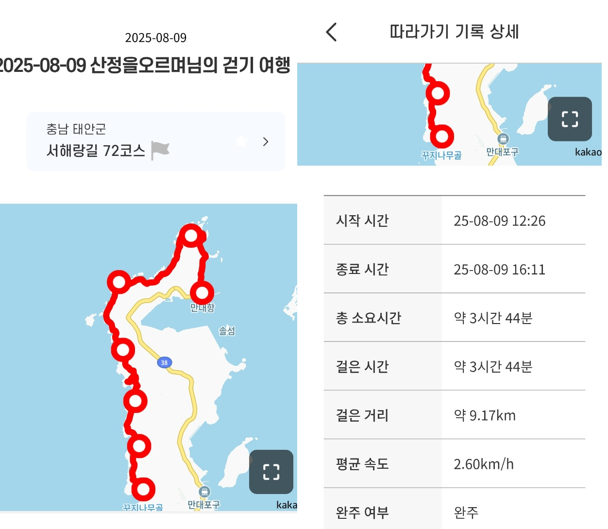 - 서해랑길72코스(만대항~꾸지나무골해변)궤적