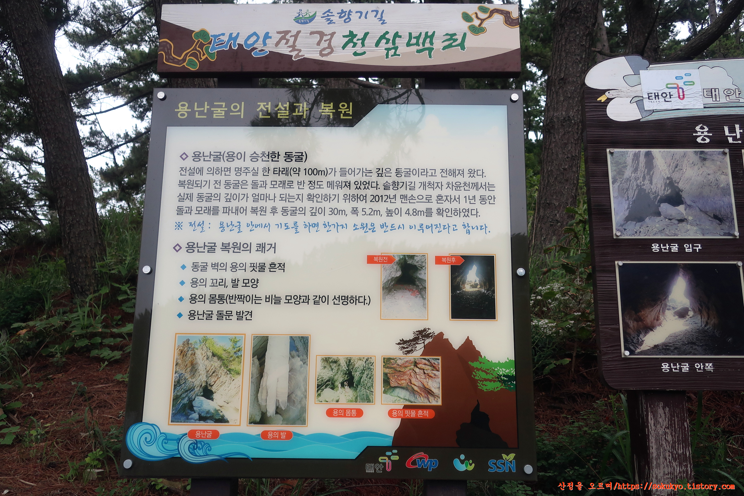 용난굴의 전설과 복원 안내판