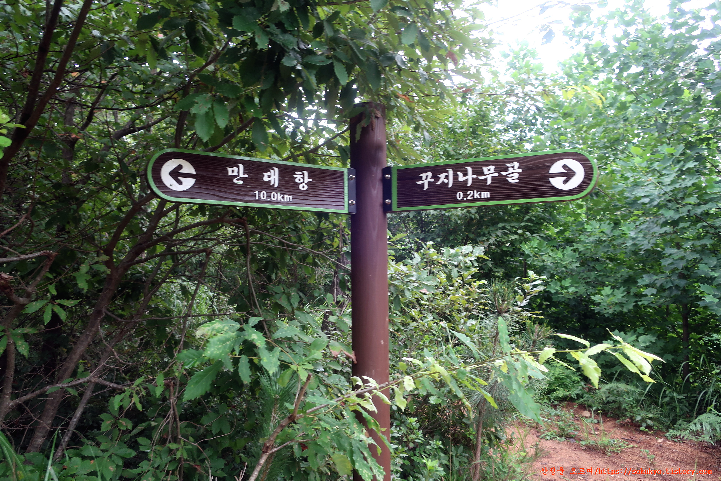 꾸지나무골 0.2km 이정표를 만나고