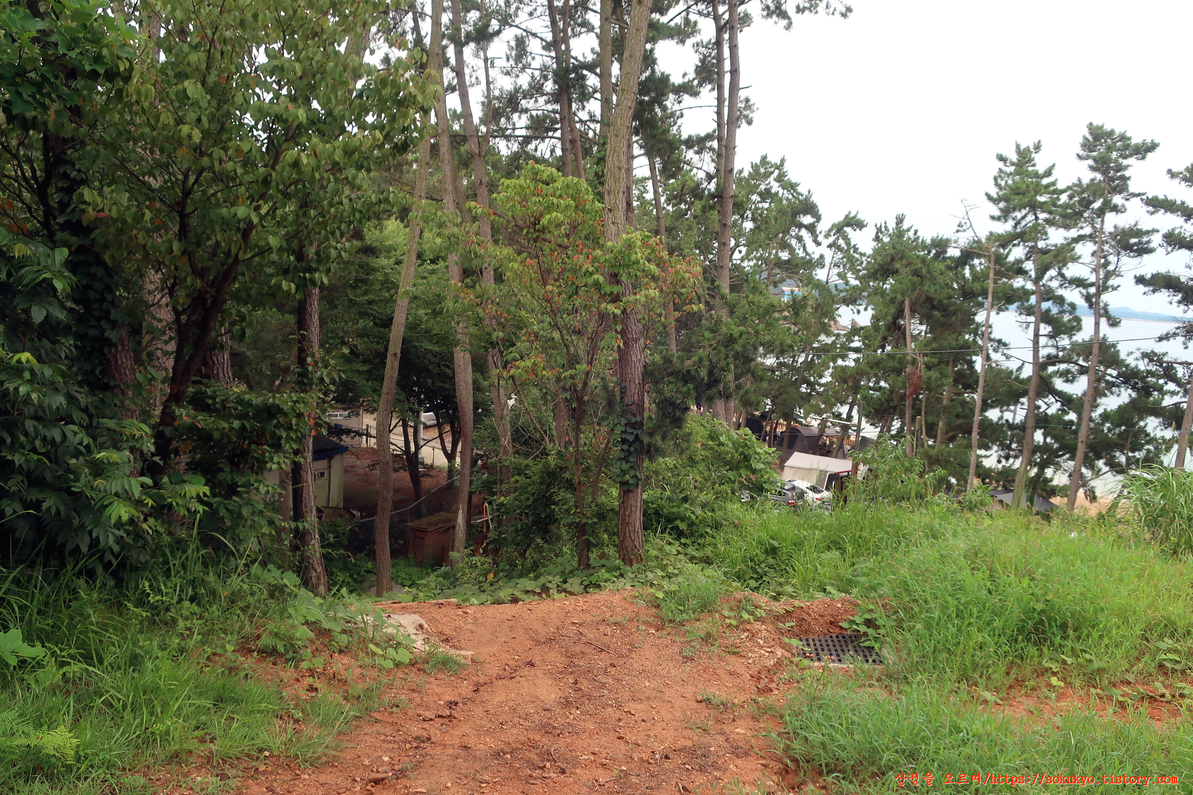 걷기를 종료하고 좌측으로 휘어져 꾸지나무골 캠핑장을 지나
