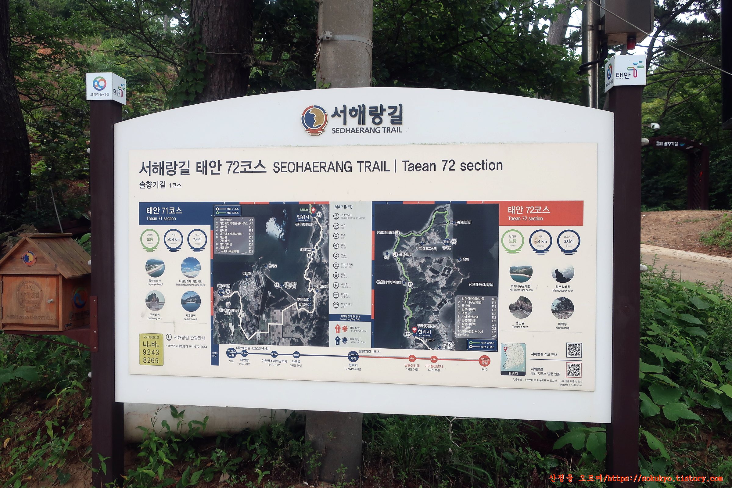 - 72코스 종점 : 충남 태안군 이원면 내리 495-1(꾸지나무골해변캠핑장북측)