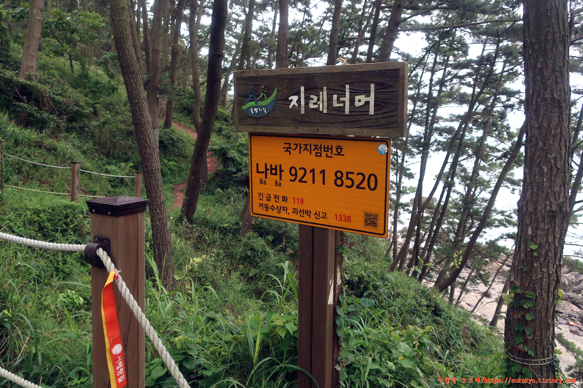 지레너머 이정목과 국가지점번호가 있는 곳을 지납니다.