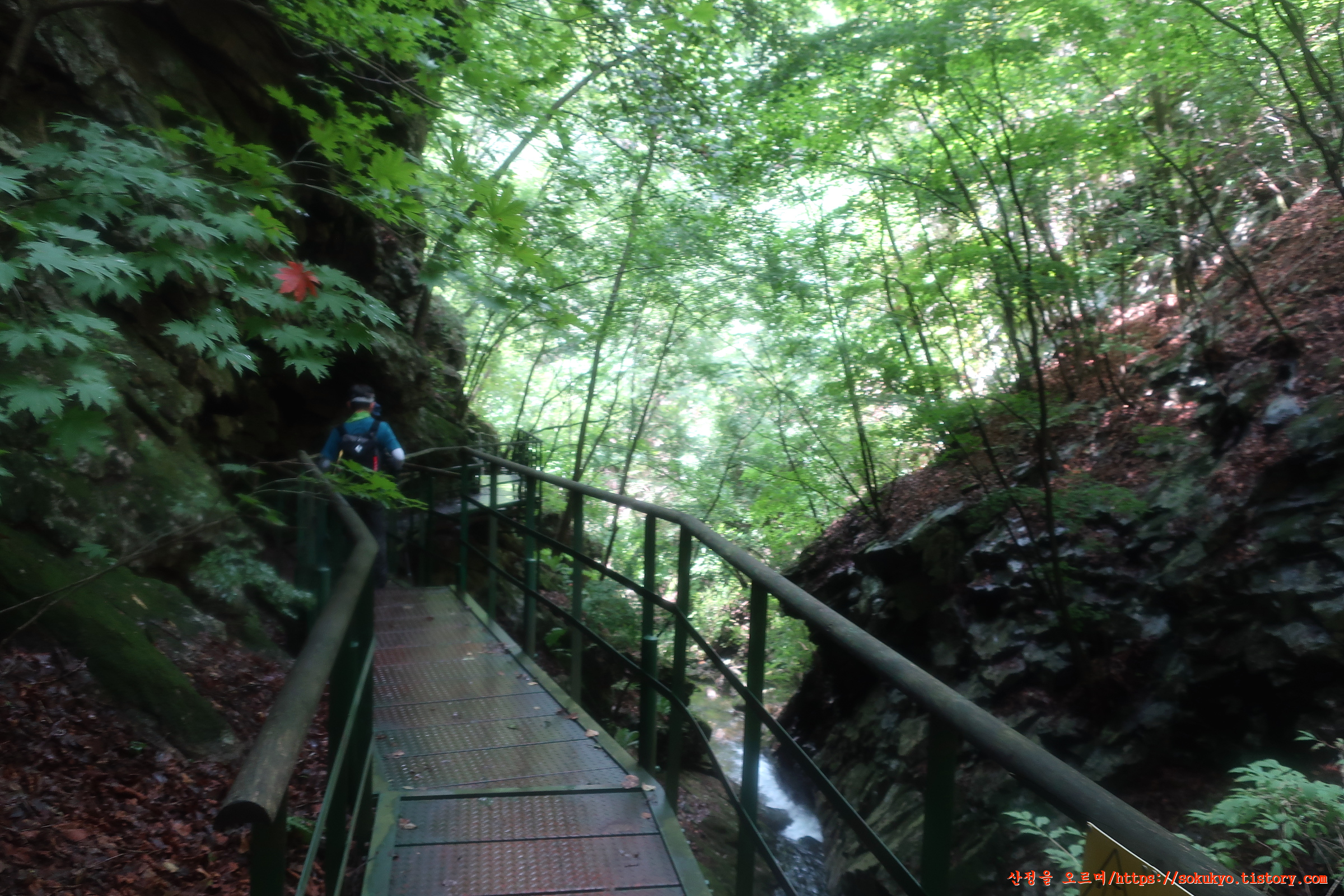 계곡을 건너면 계곡을 따라 이어지는 잔도를 만납니다.