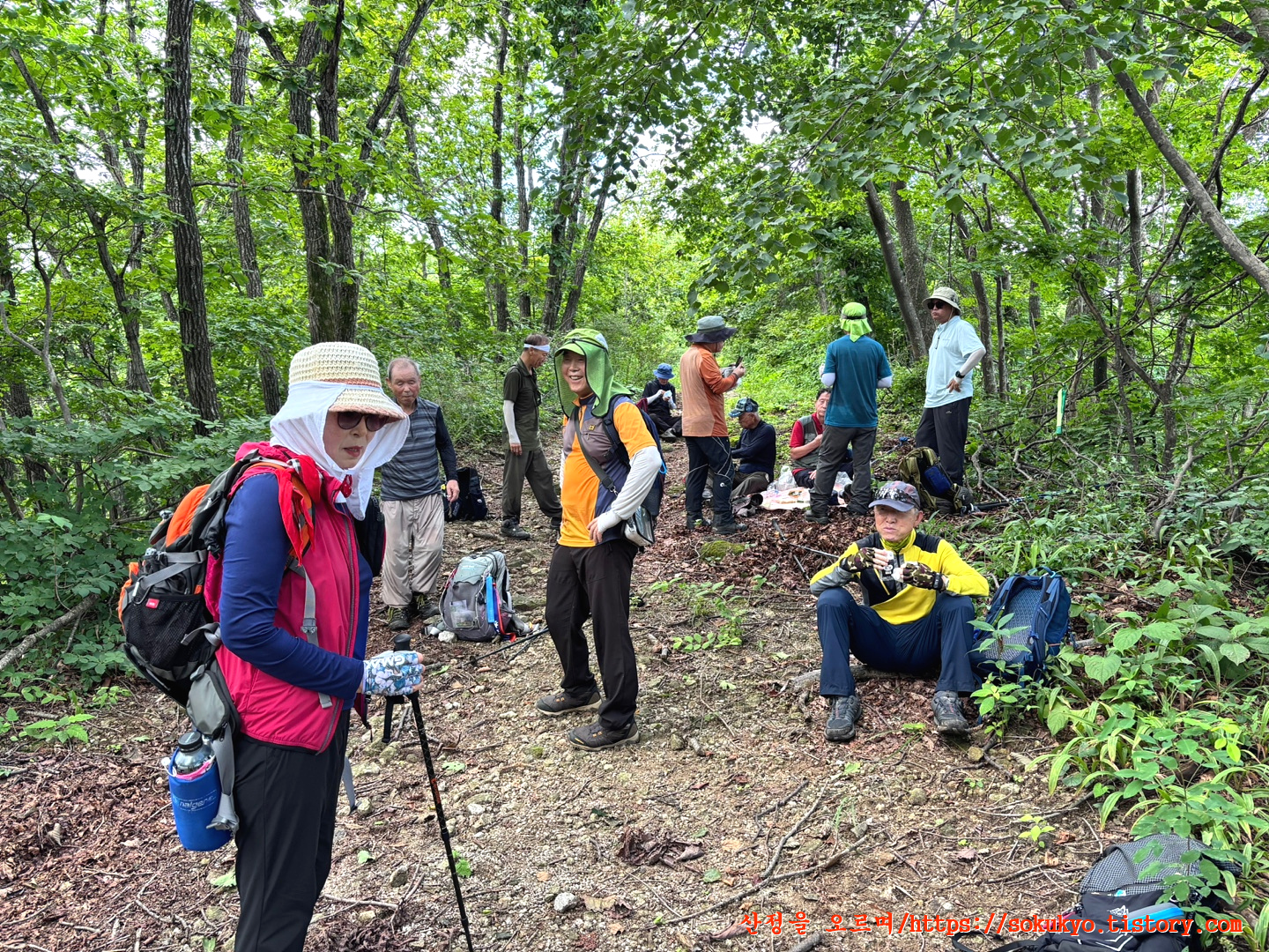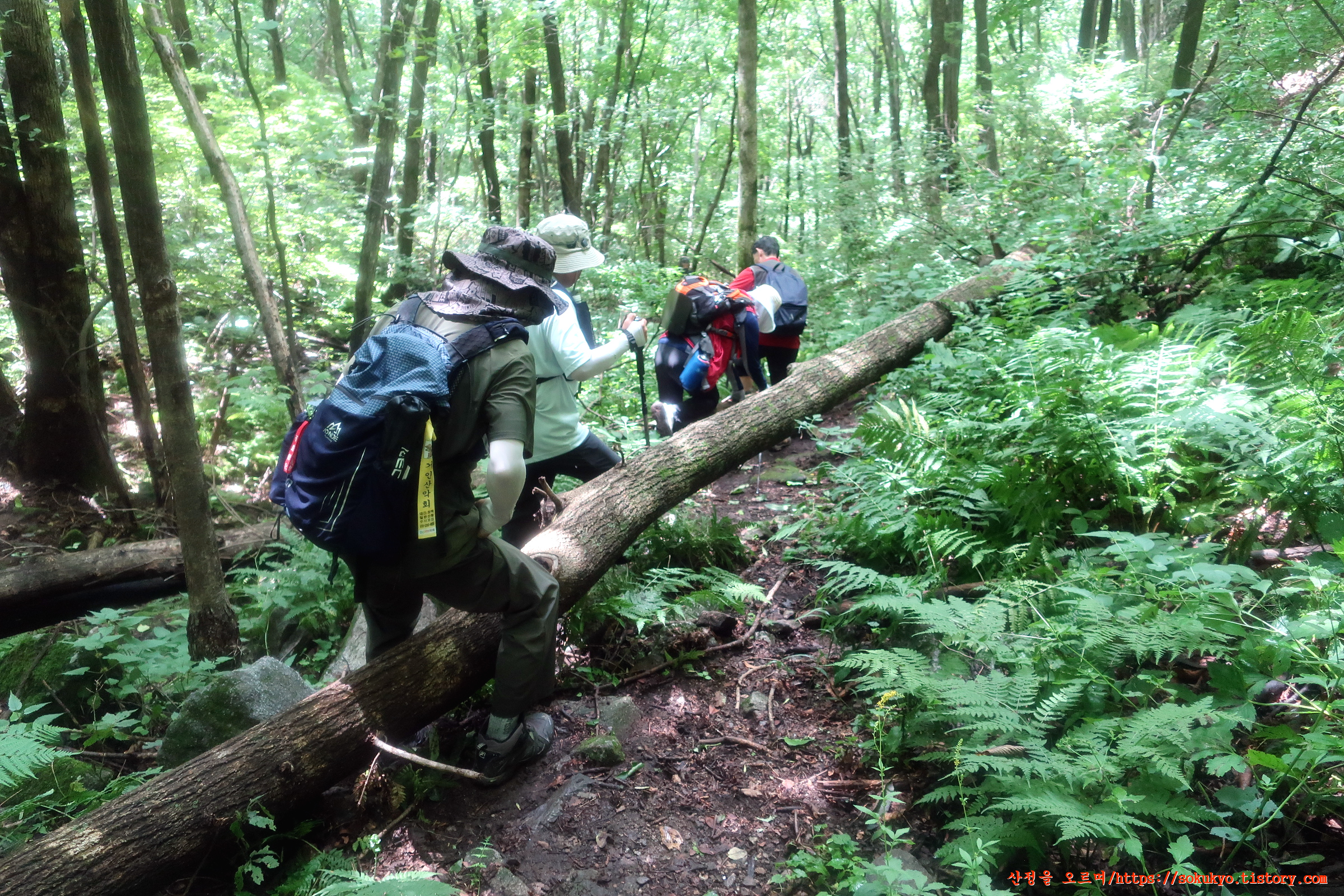 점심을 먹고 나서 계속해서 고도를 올리며 복주산 갈림길 삼거리까지 진행합니다.