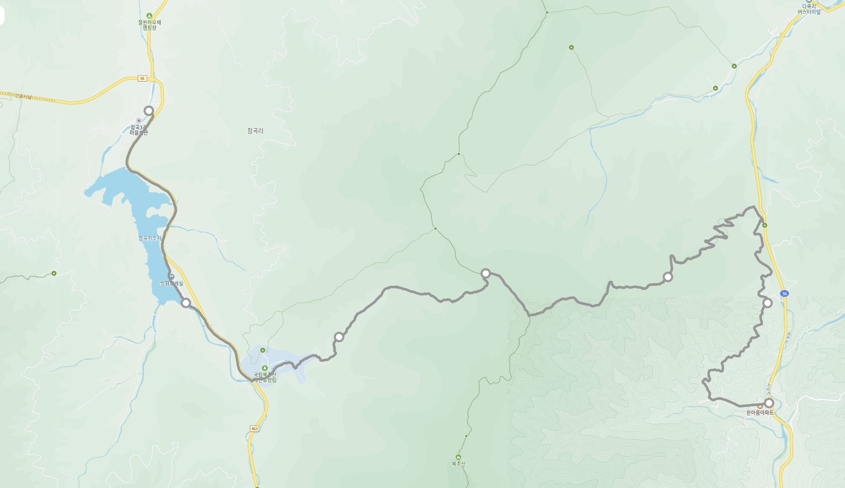 잠곡저수지를 지나 조금더 도로를 따라 걸으면 삼거리에 닿고