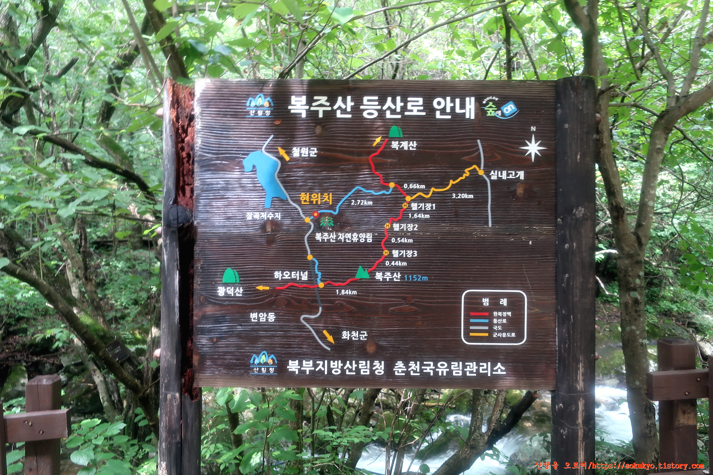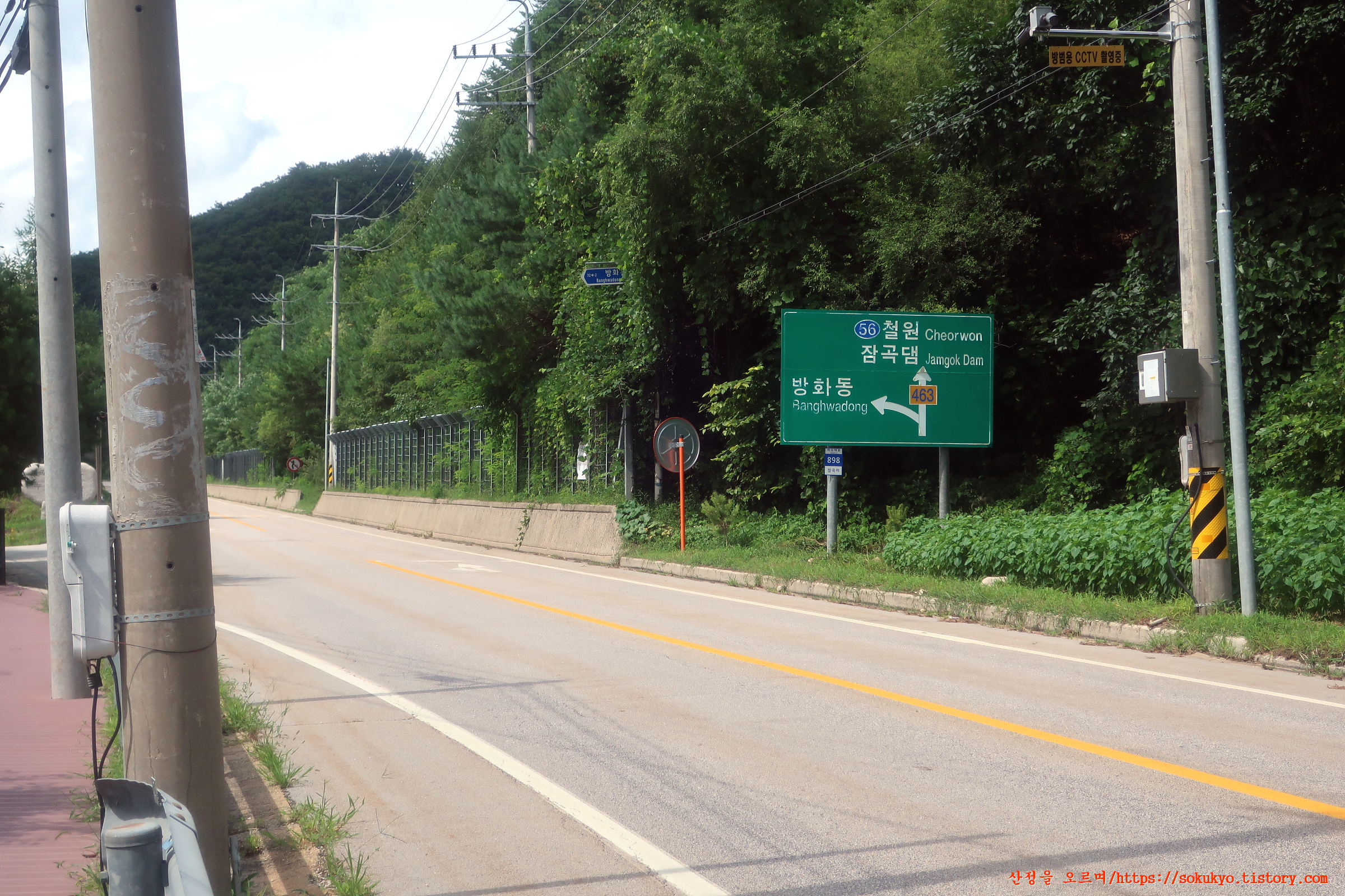 좌측으로 진행하여 복주산 임도를 따라 진행하여 철원군 근남면 잠곡리의