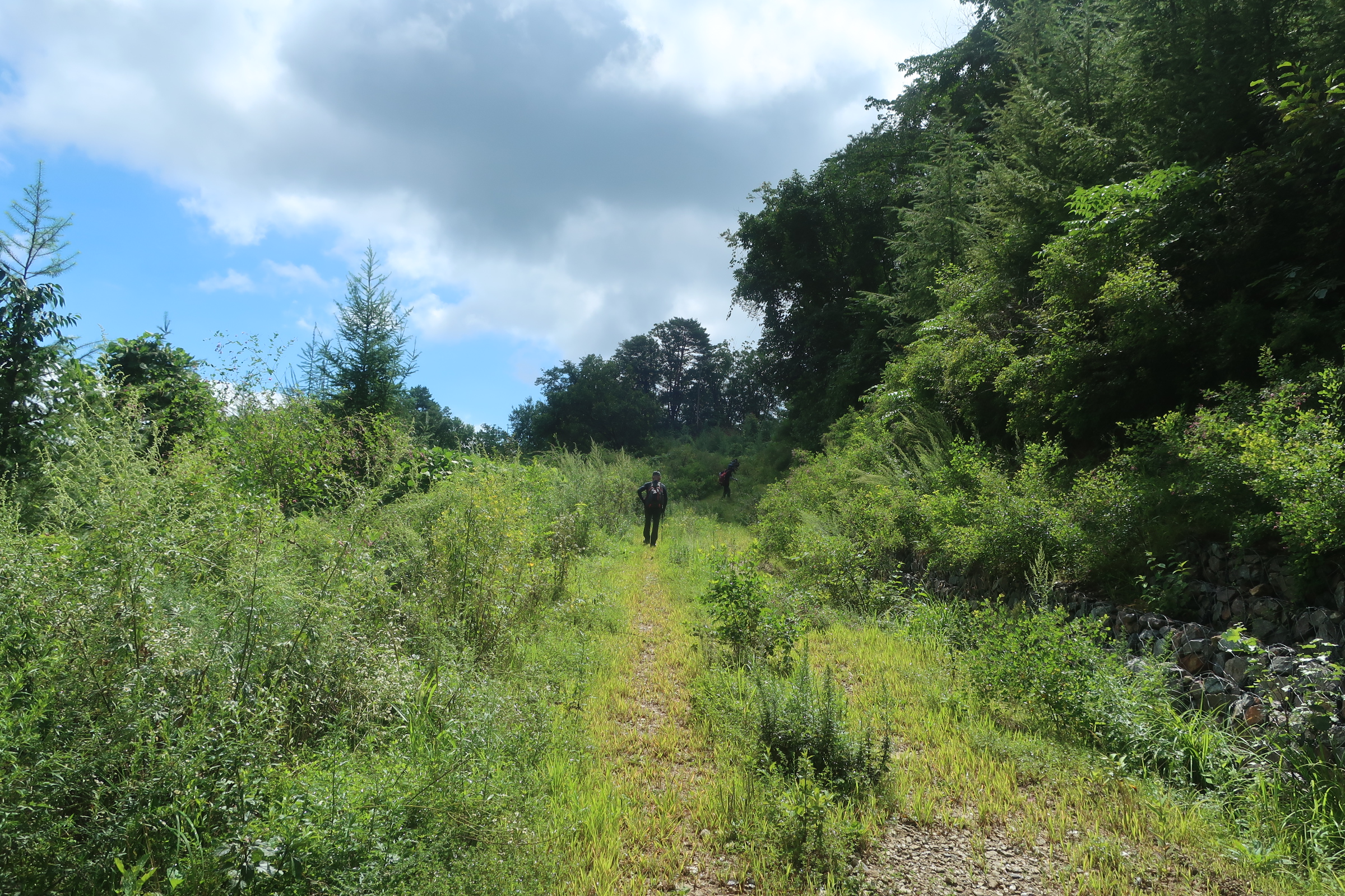풀이 무성하고 젖어 있어 앞사람의 발자국을 따라