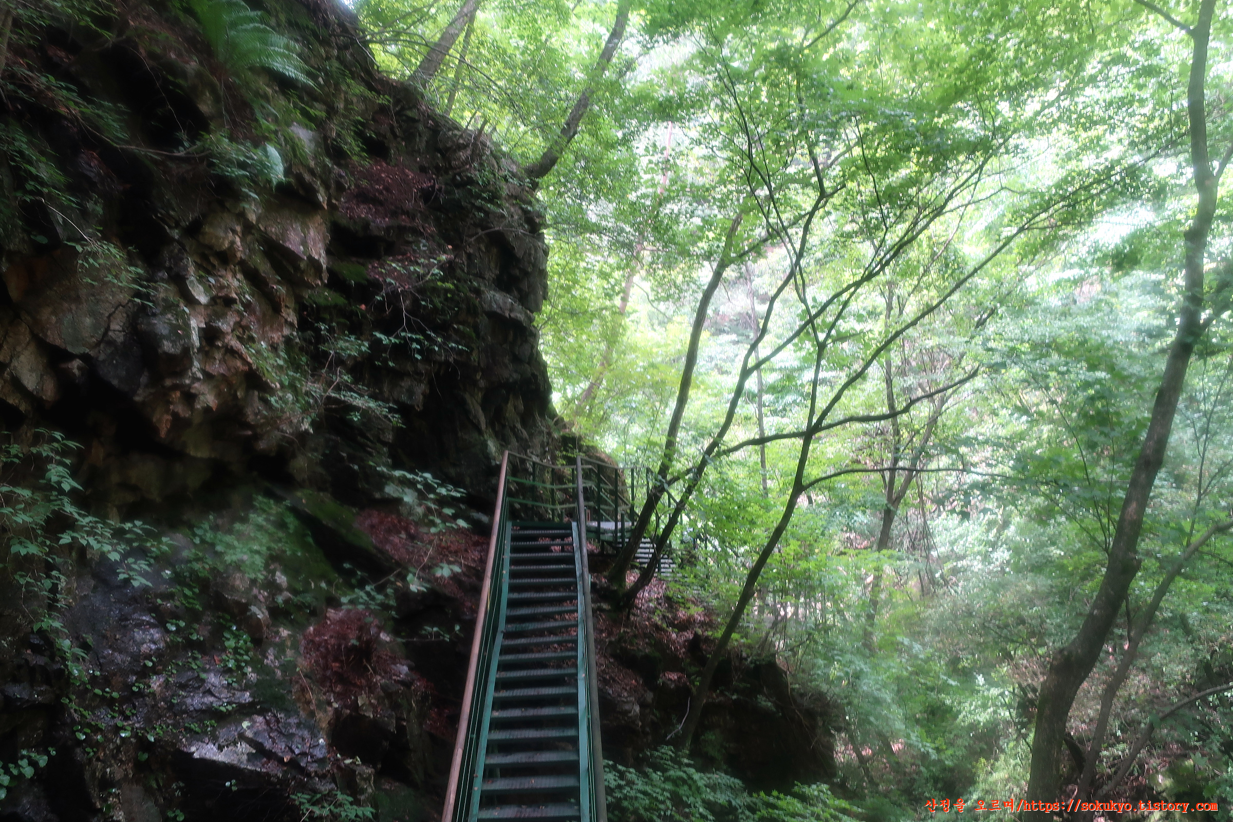계속해서 계곡의 절벽을 따라 이어지는 철계단을 지납니다.