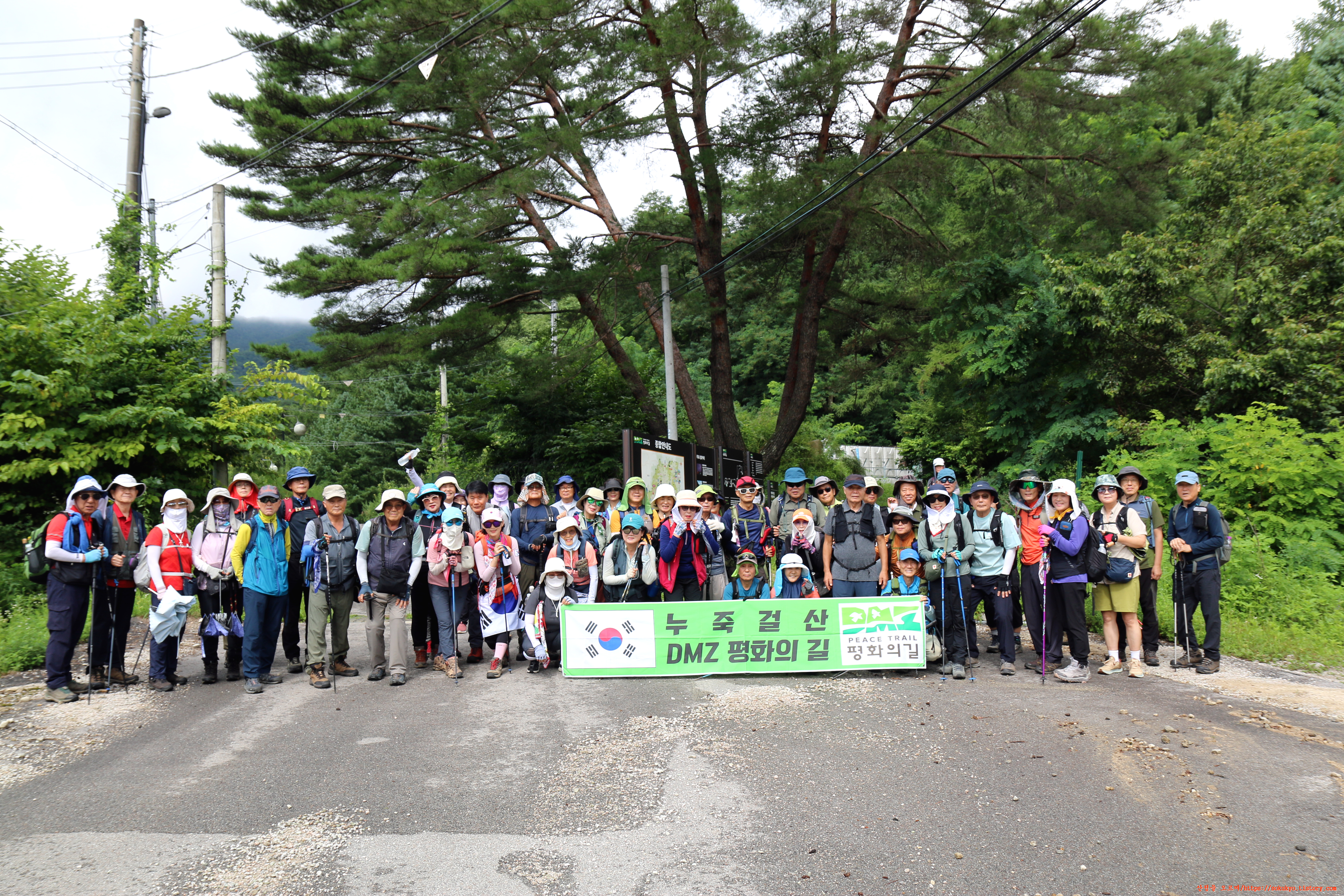 DMZ평화의길19코스에 참석한 회원님들과 한자리에서 사진을 찍었고