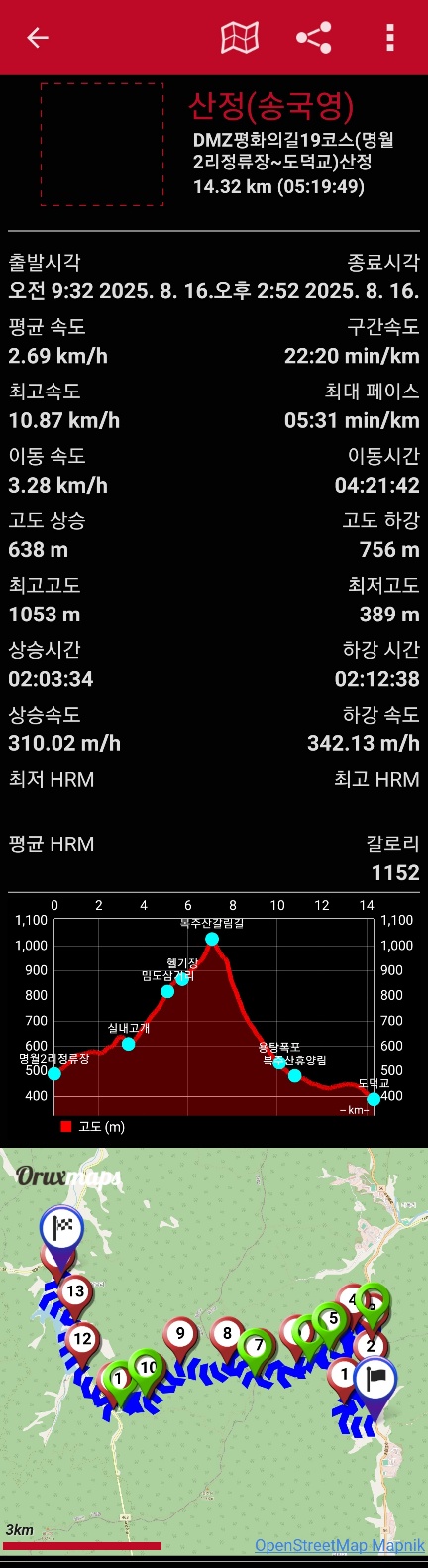 ▶ 오록스맵 기록 : 14.32km / 05시간19분(09:32~14:52)