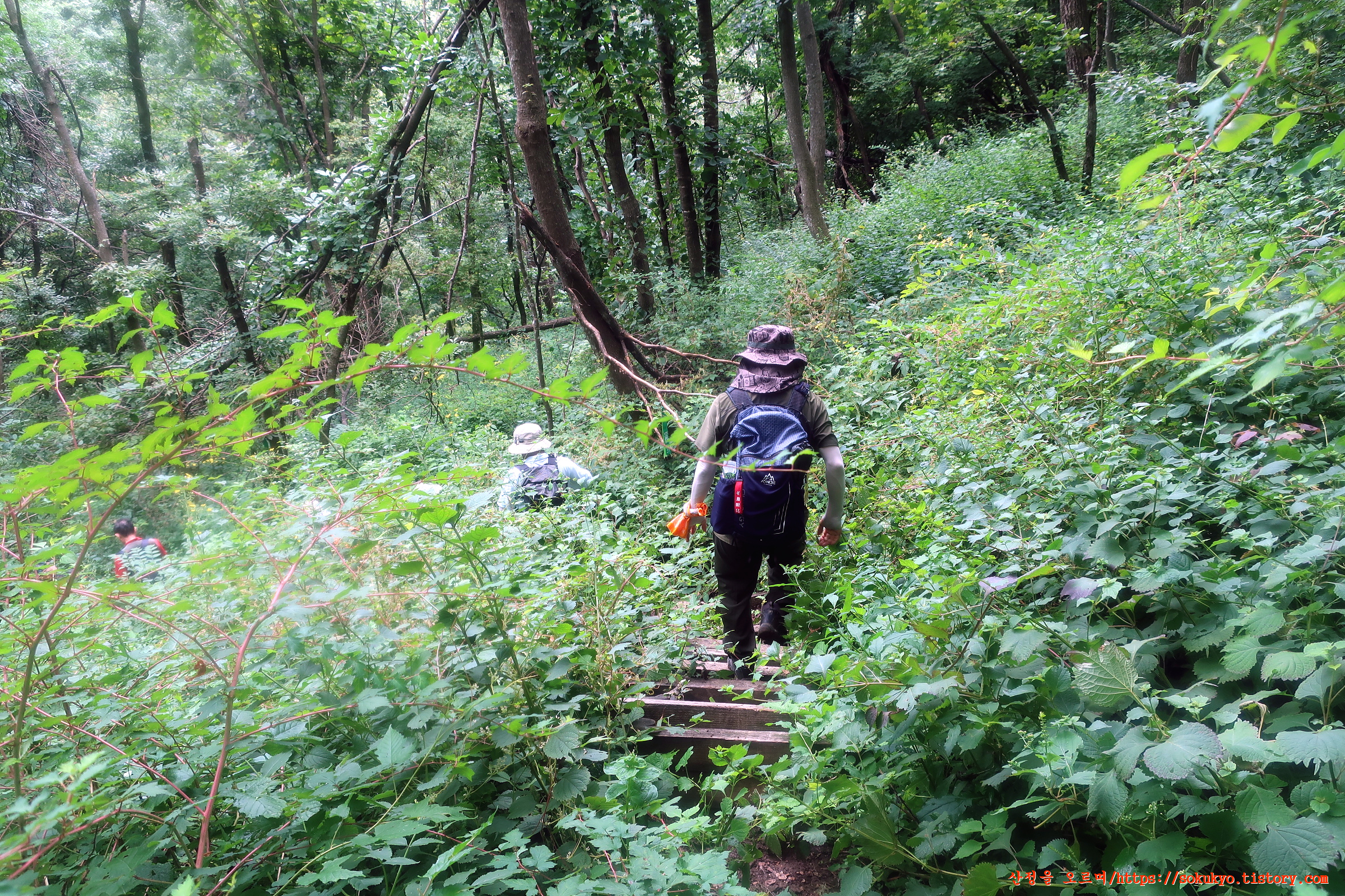 따라 산능선을 걷는 코스로 난이도가 높은 구간으로 무더위가 한풀 꺽이면