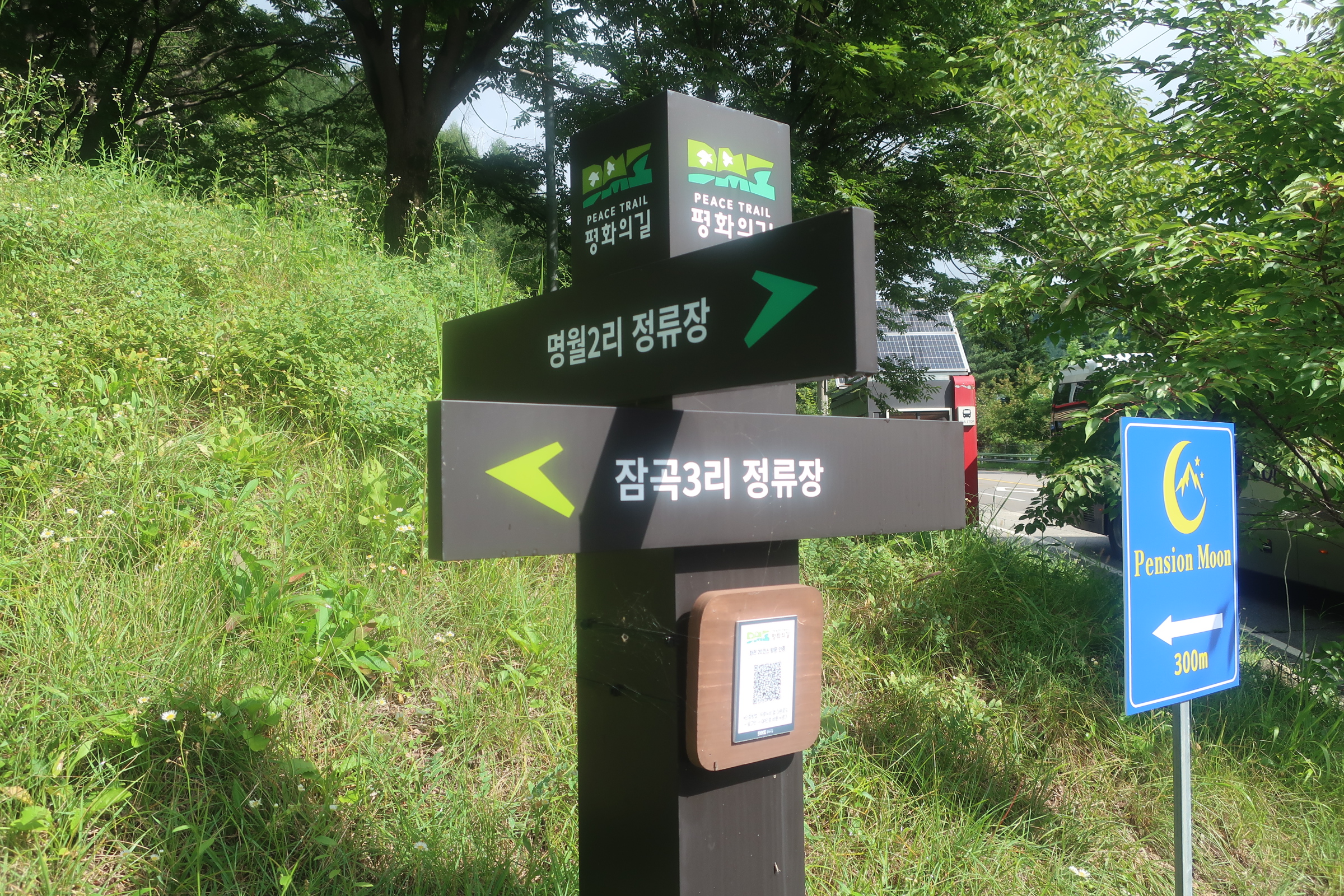 우측에 DMZ평화의길 이정표에 QR코드가 있는 곳에 닿습니다.
