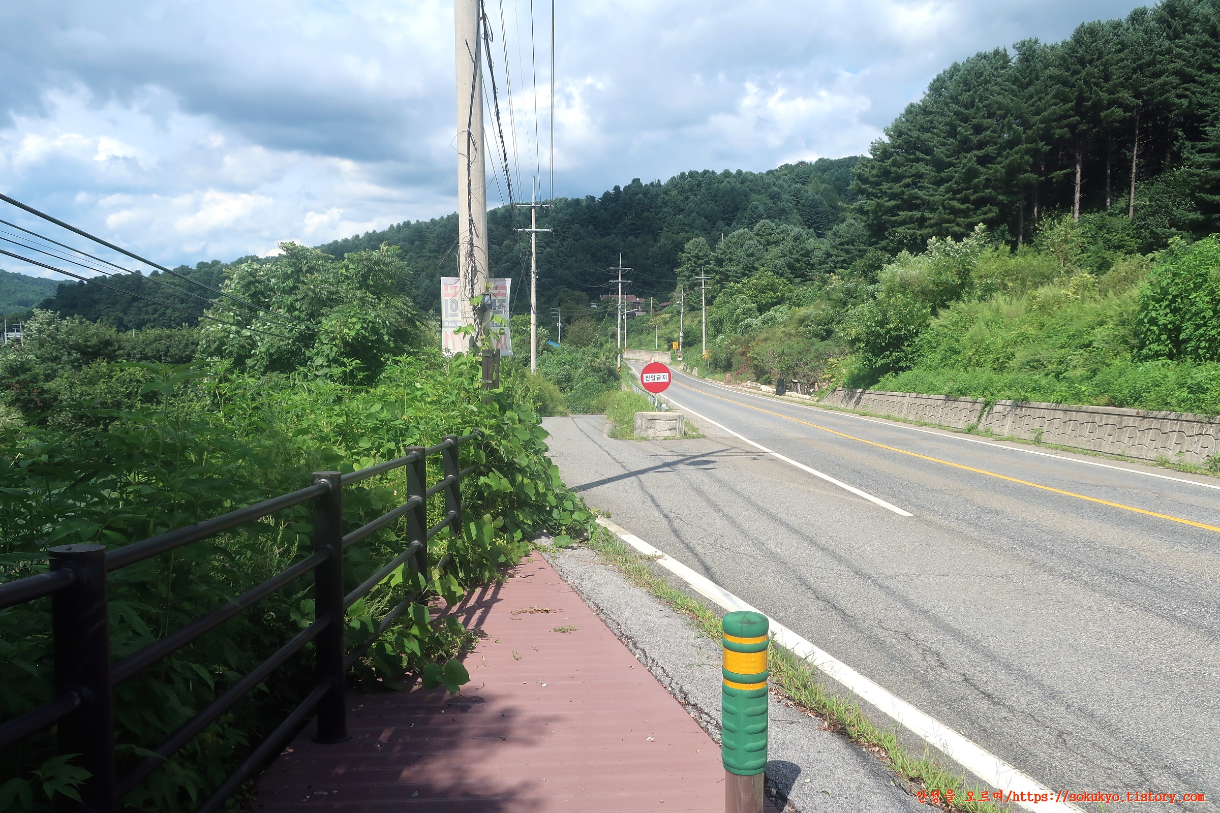 진입금지 표지판 좌측의 포장도로로 들어섭니다.