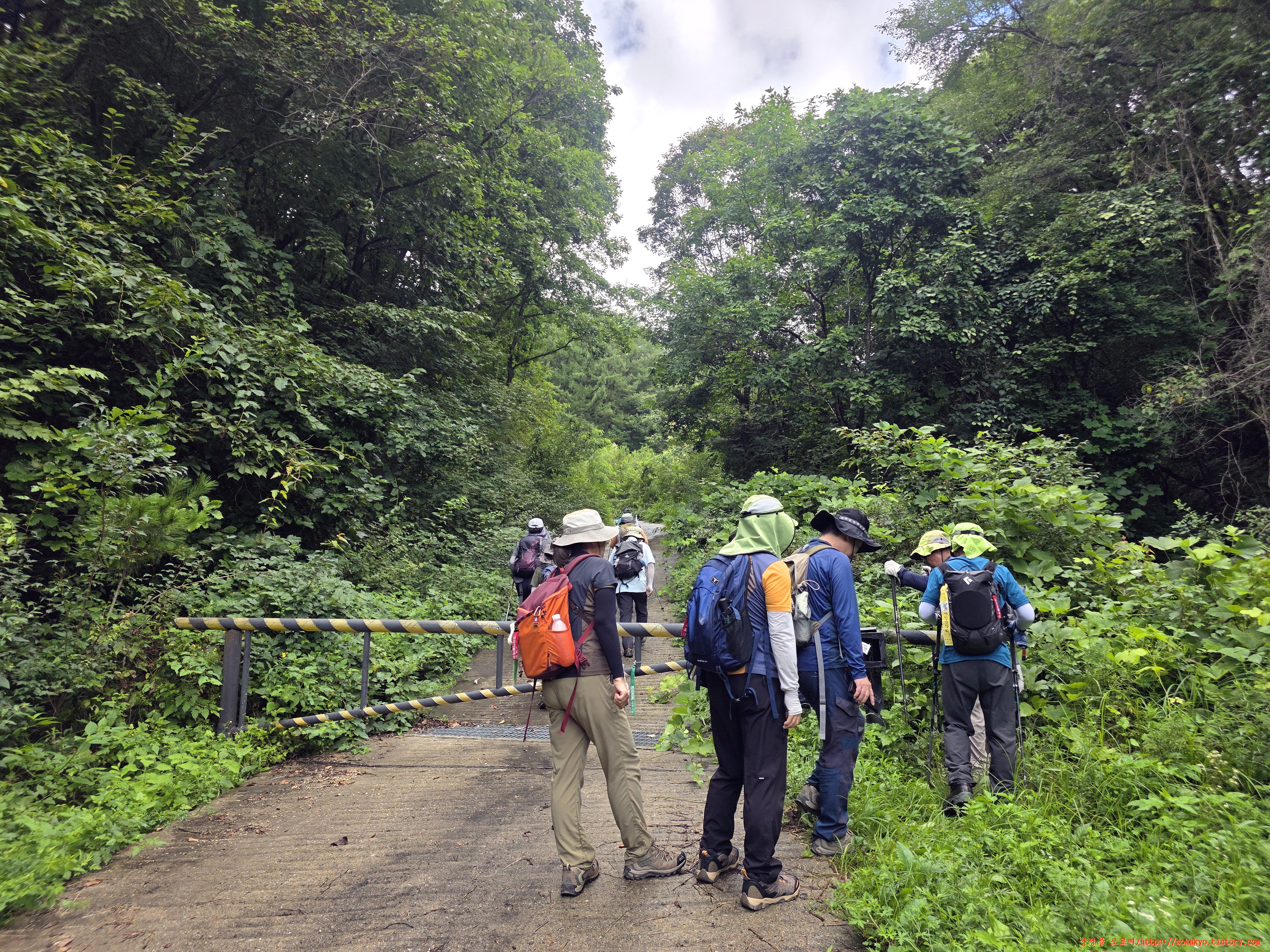 단체 사진을 찍은후 임도차단기가 설치되어 있는 임도 안으로 들어섭니다.