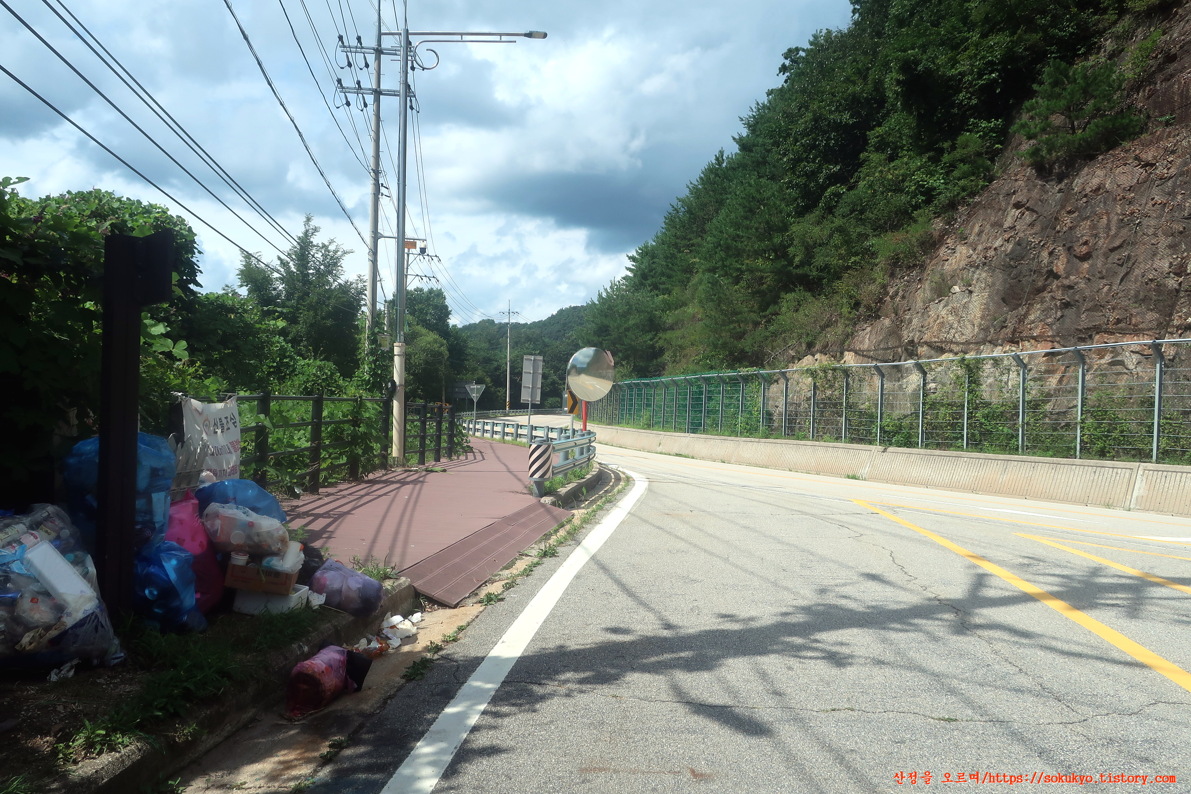 잠곡저수지 데크길을 걷다가 다시 463번도로(하오재로)를 걷습니다.
