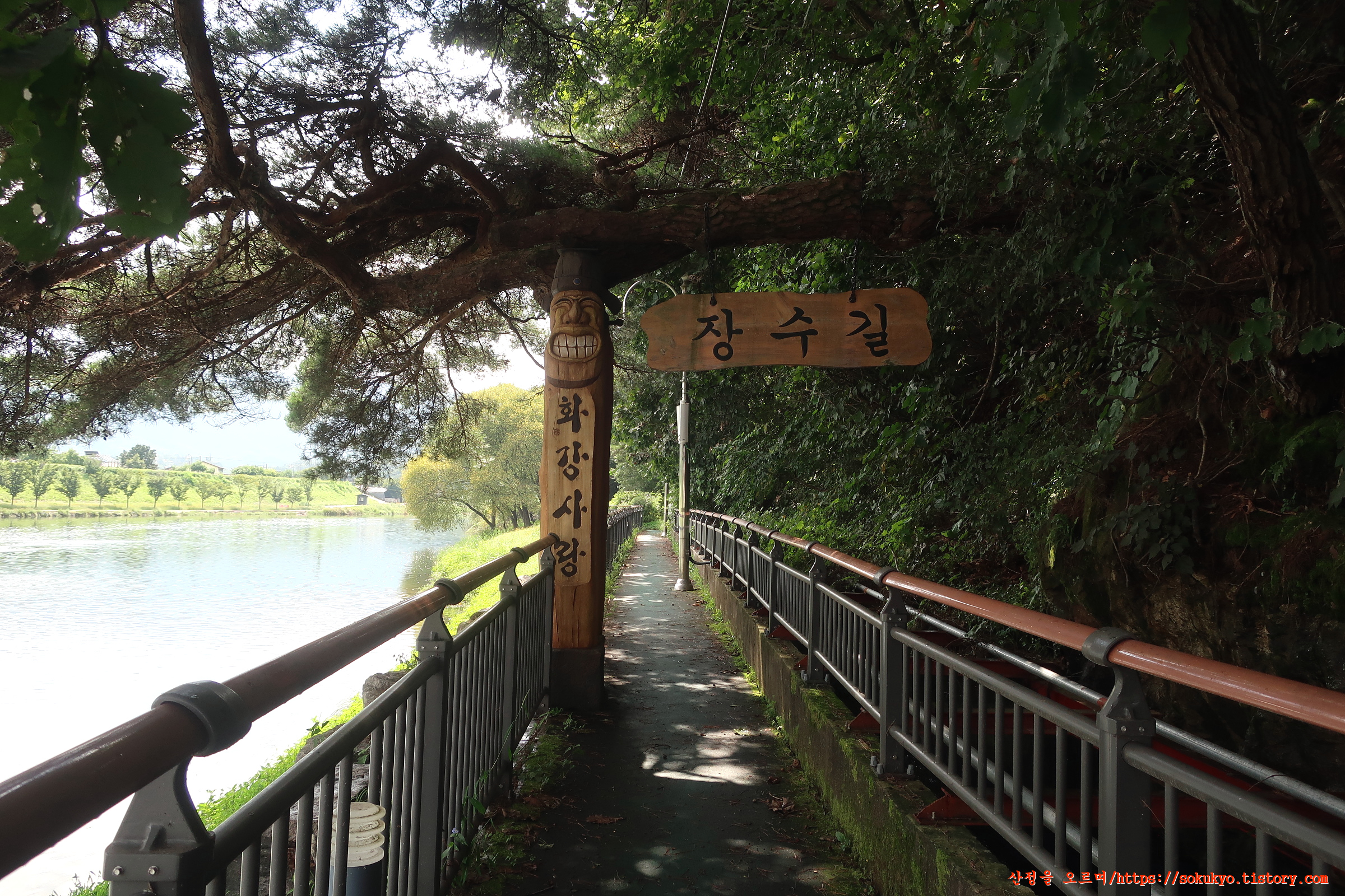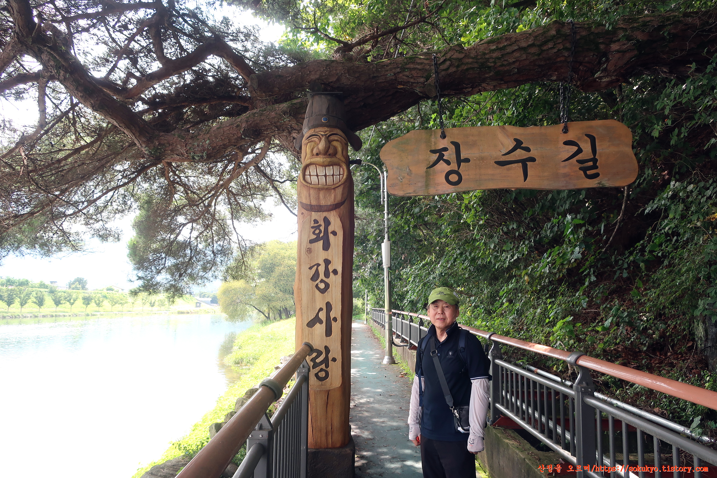 '화강사랑'이란 글씨와 장수길 표지판이 설치되어 있네요