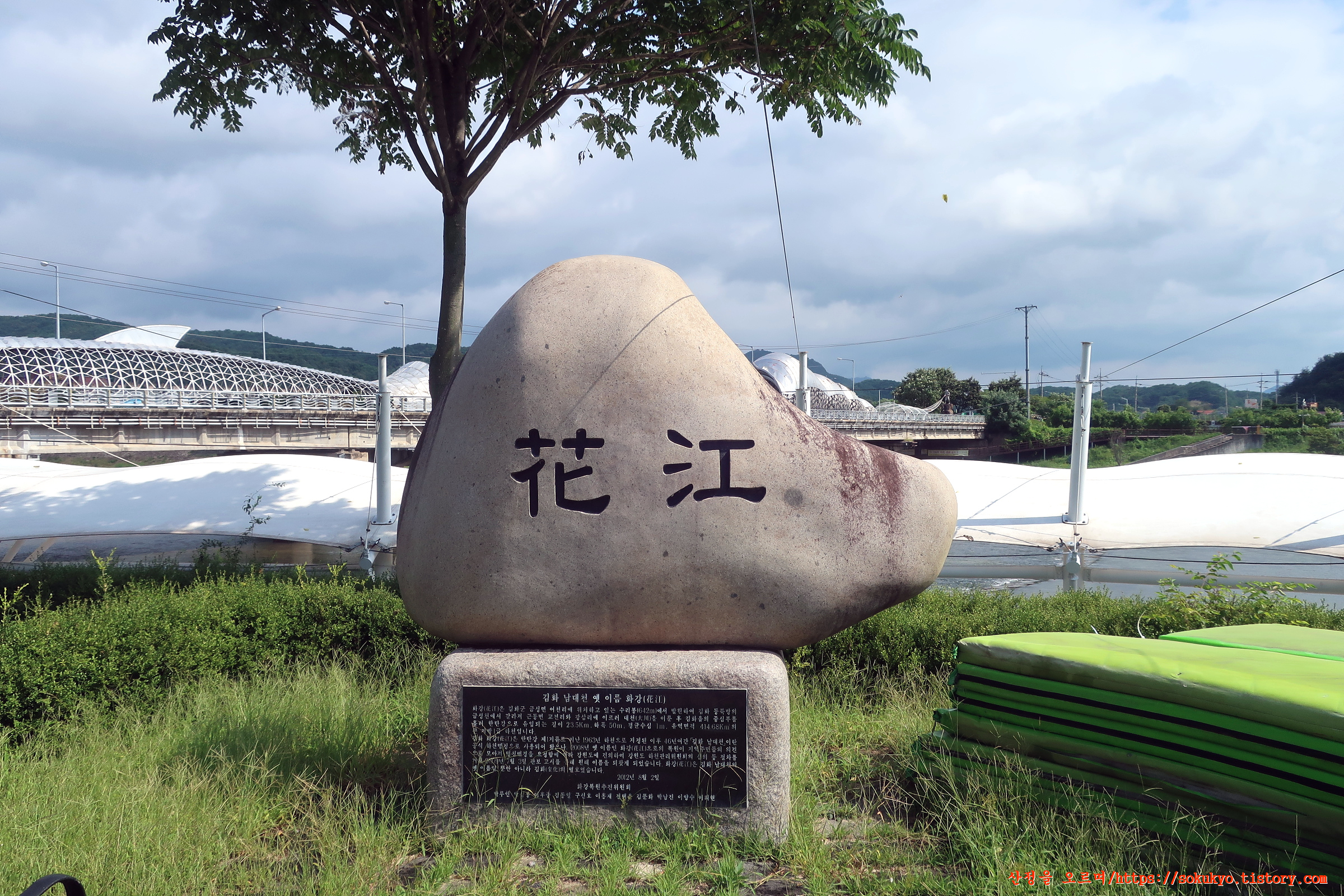 화강위를 가로지르는 '장수대교' 아래를 지날 즈음에..