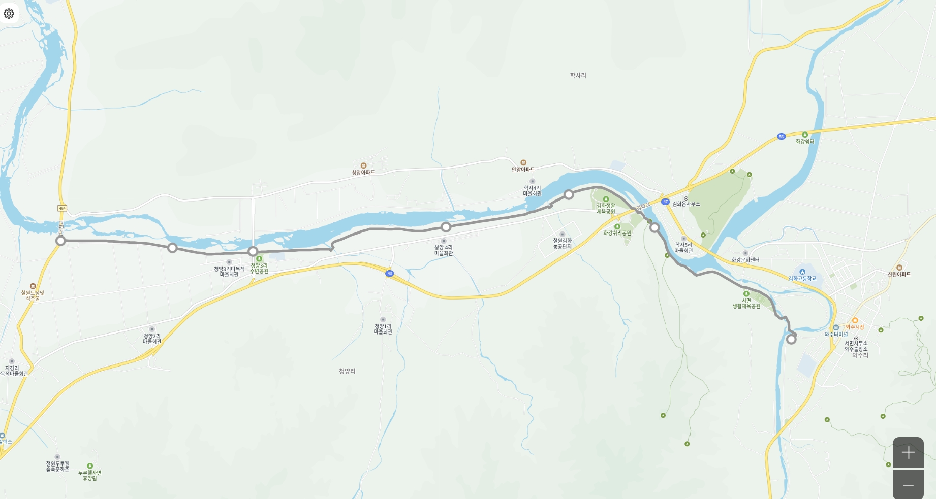 - 종점(와수리세월교) : 강원도 철원군 서면 와수리 1260-2