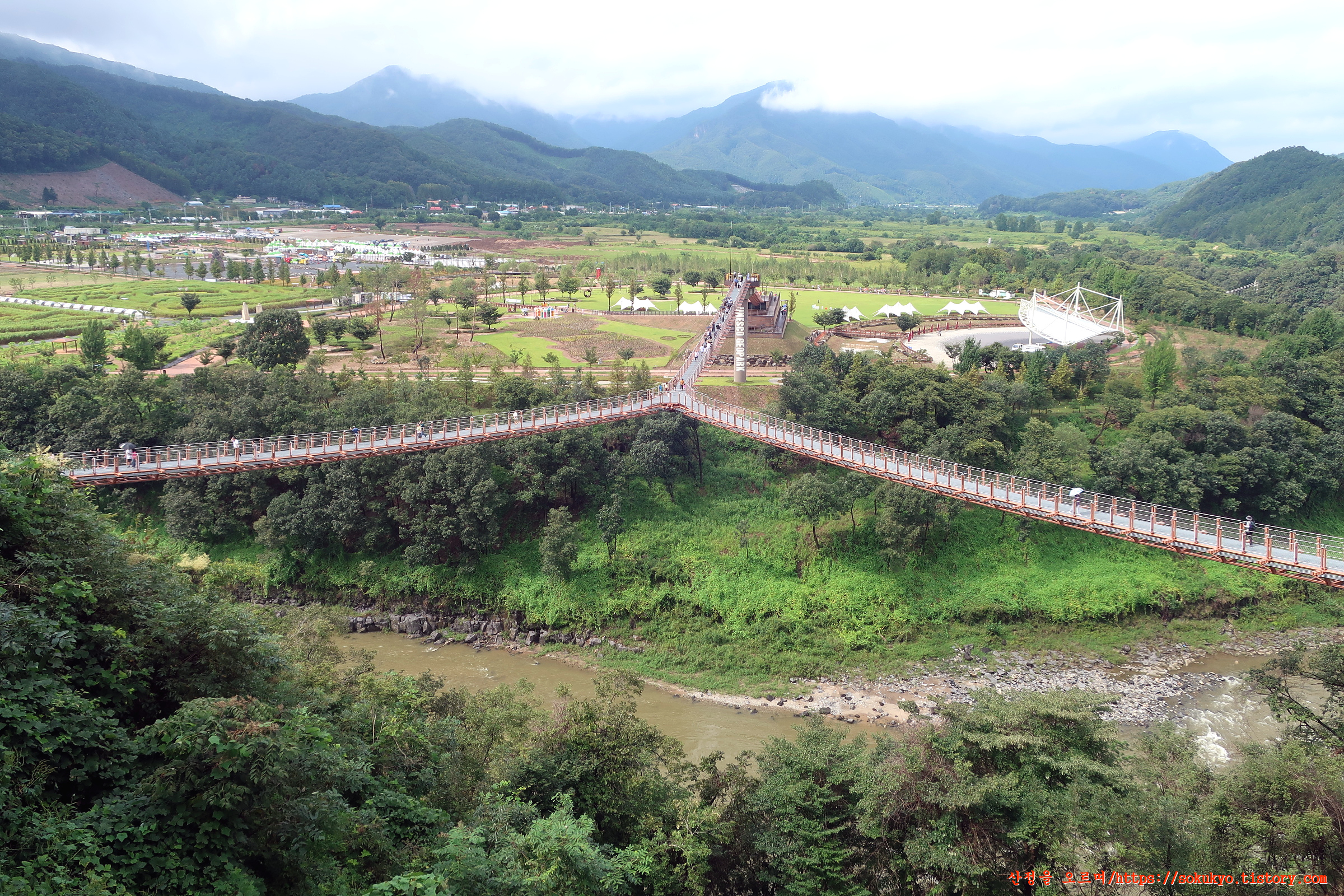 가든 페스타가 열리는 정원에서 바라본 한탄강 위에 놓인 Y자 출렁다리