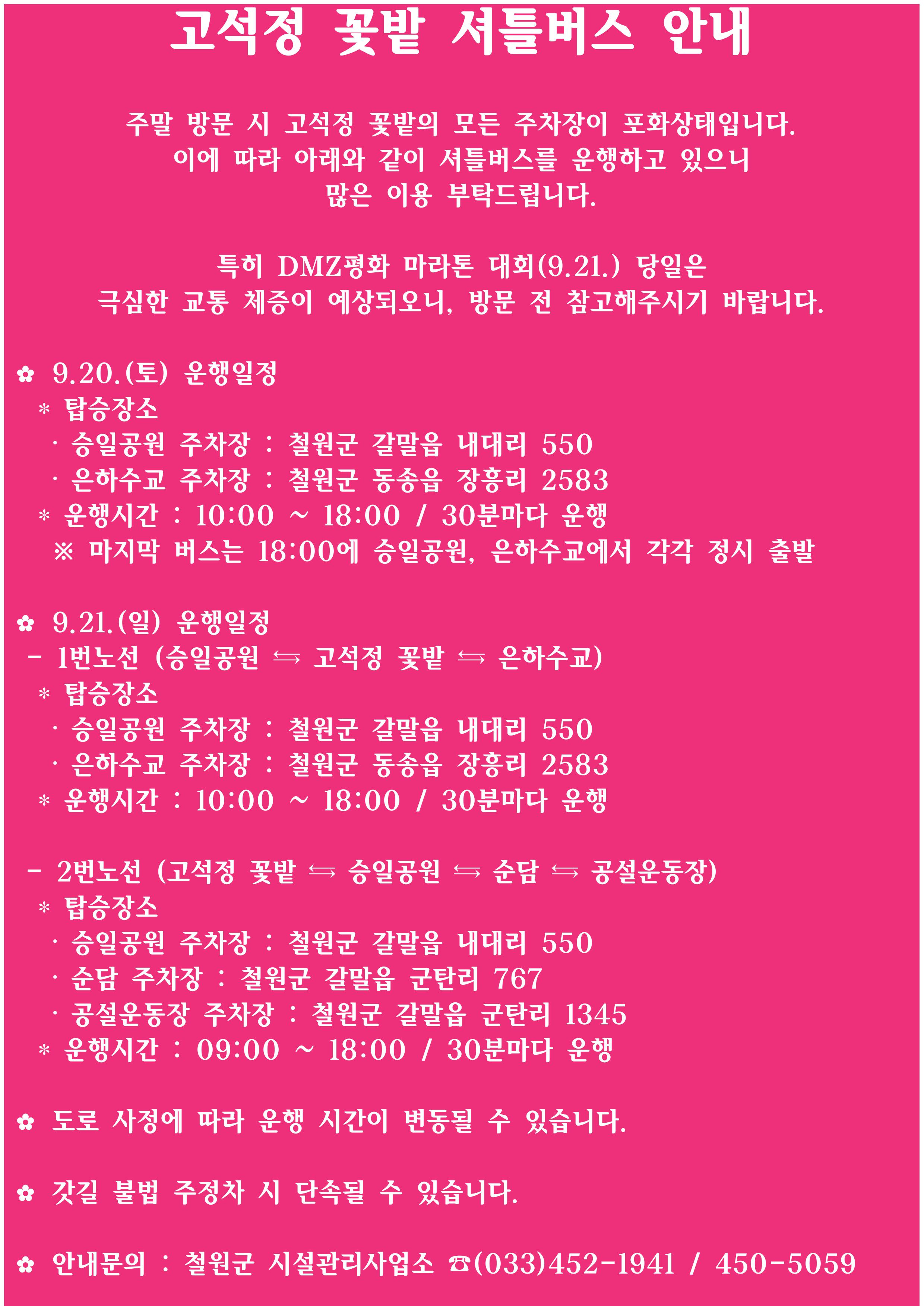 ♥ 2025 철원 고석정 꽃밭 가을 개장 안내 홍보물