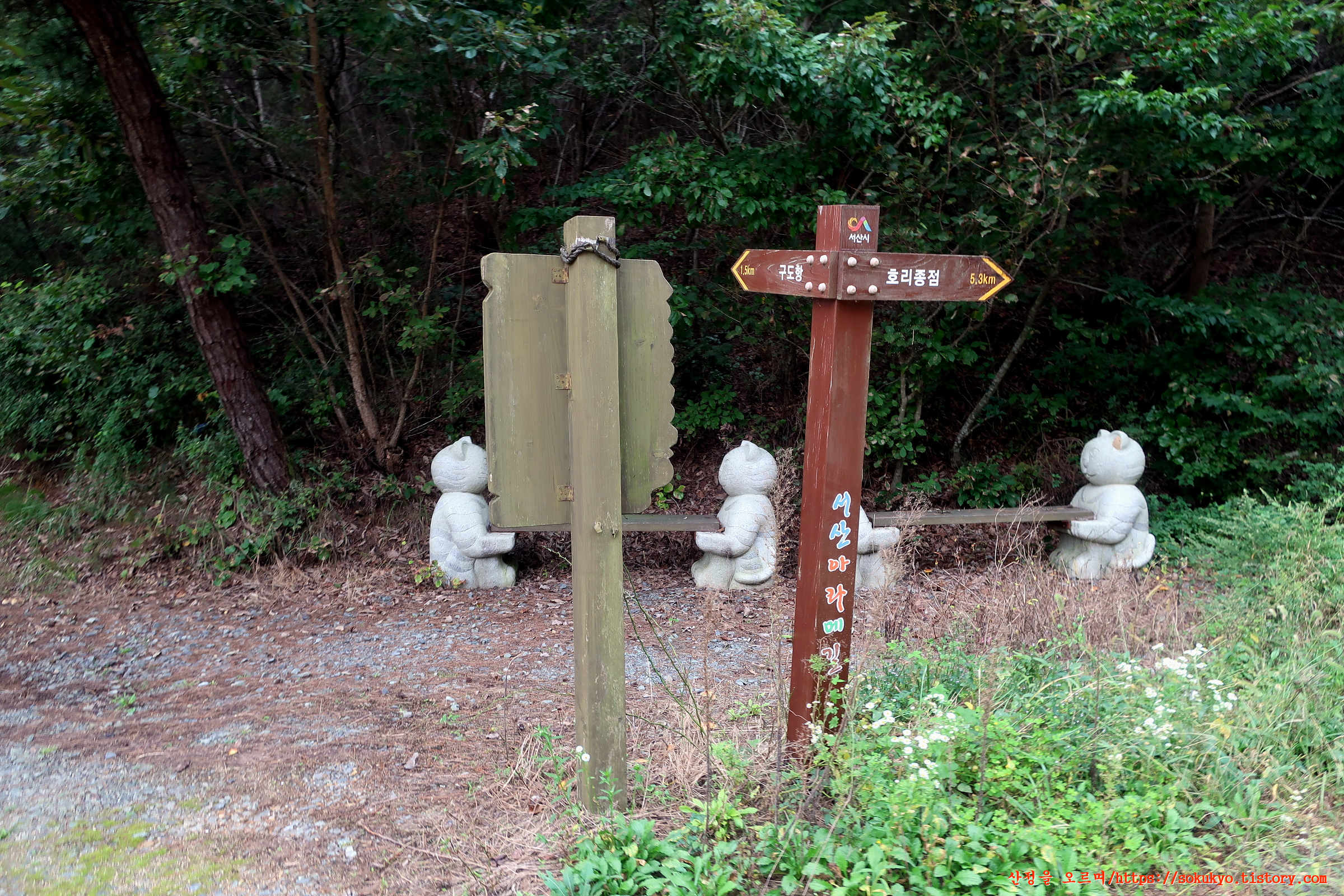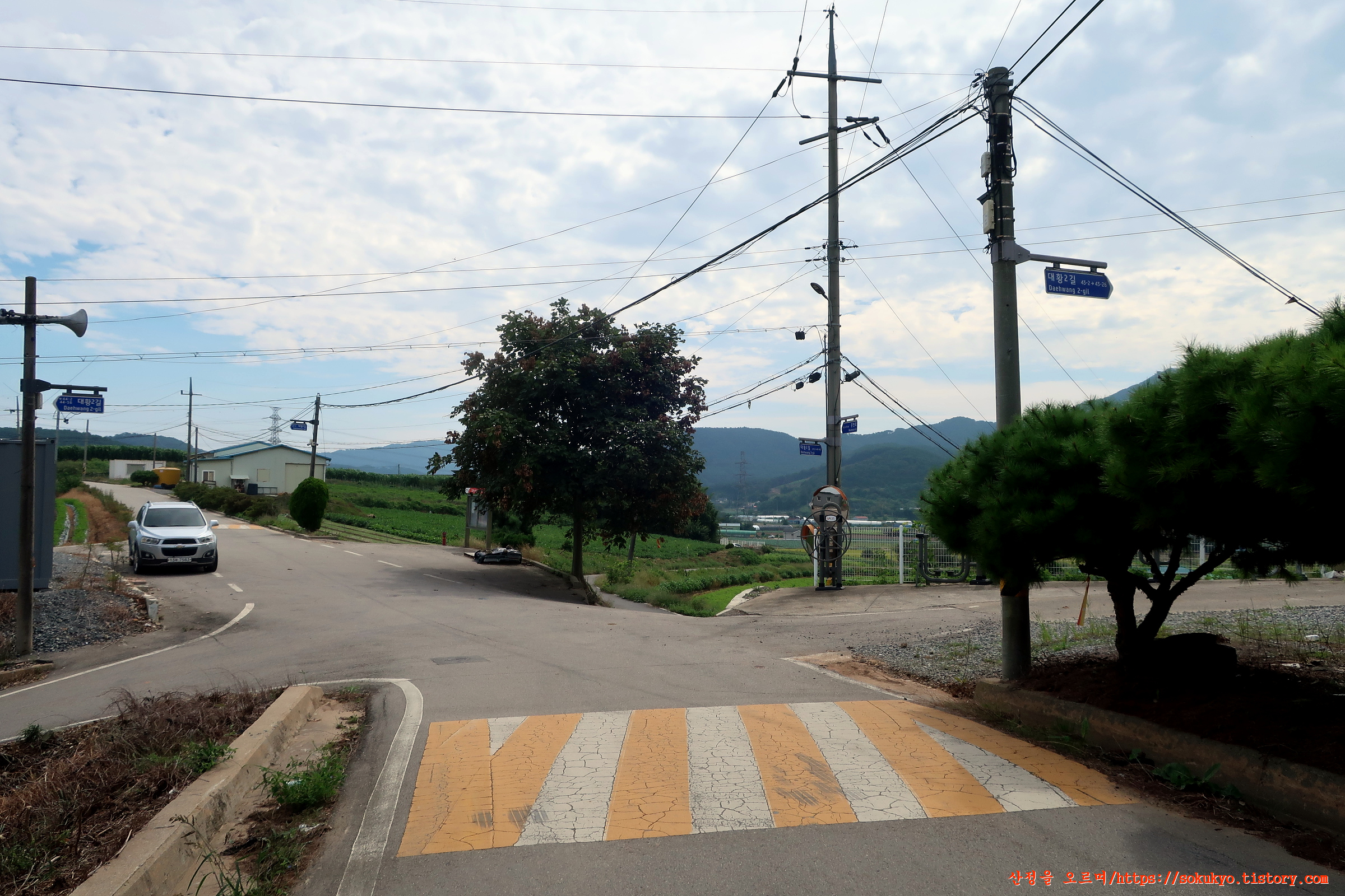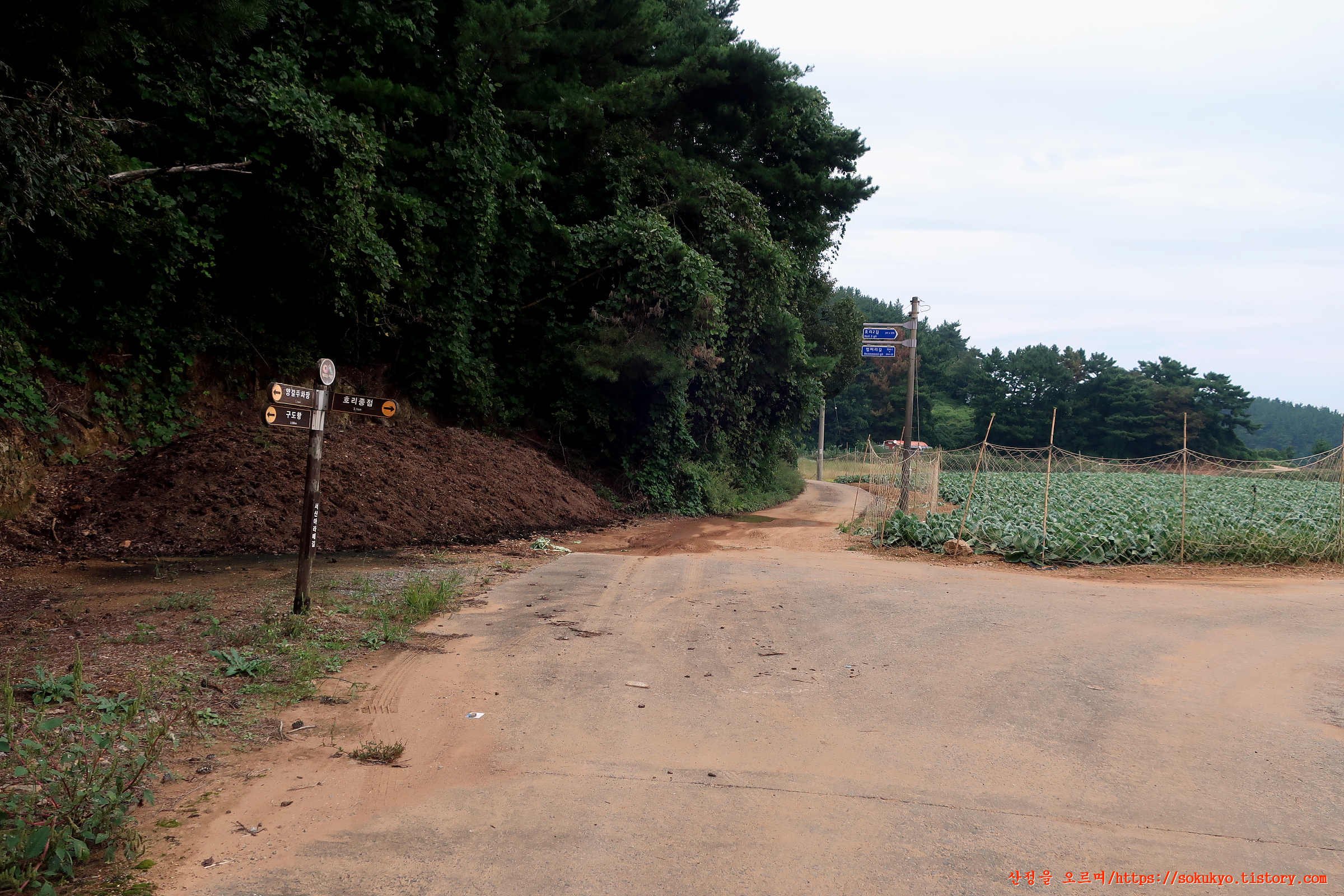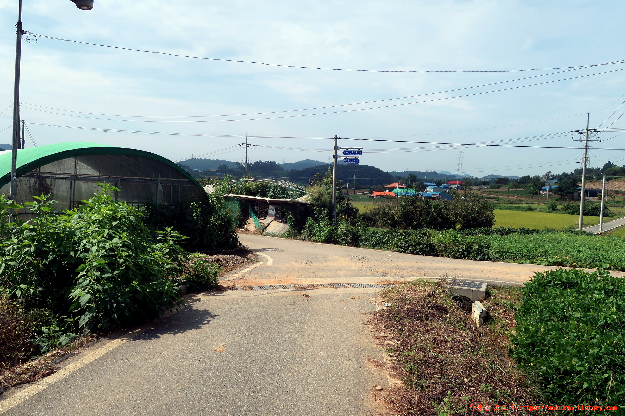 서해랑길은 우측으로 갈래쳐가는 세멘트도로를 따라 가야 합니다.