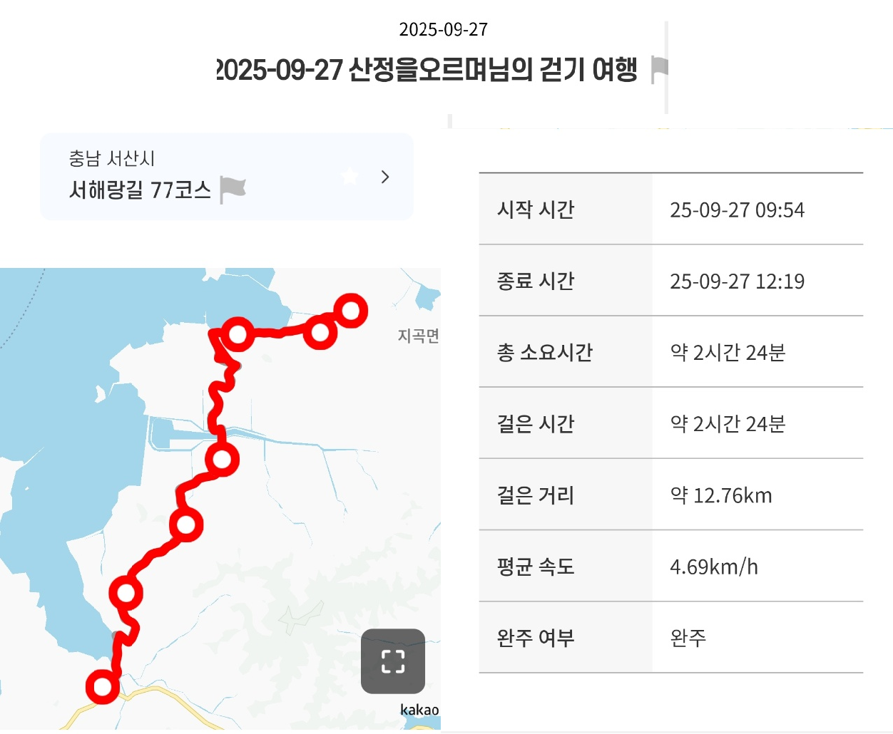 - 77코스 : 12.76km/2시간24분(09:54~12:19)