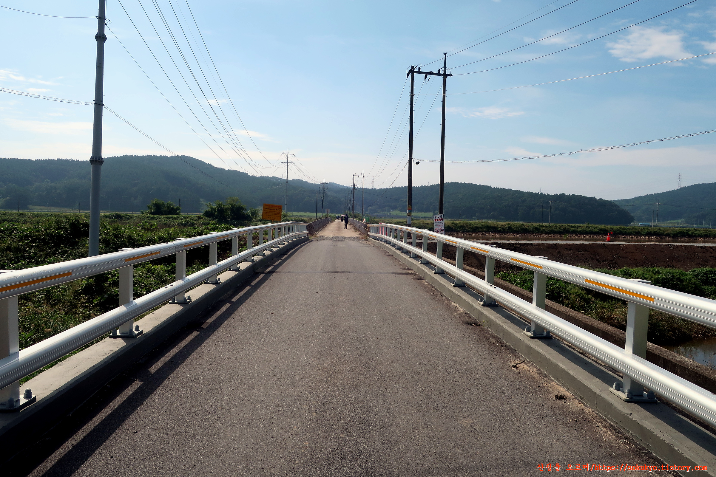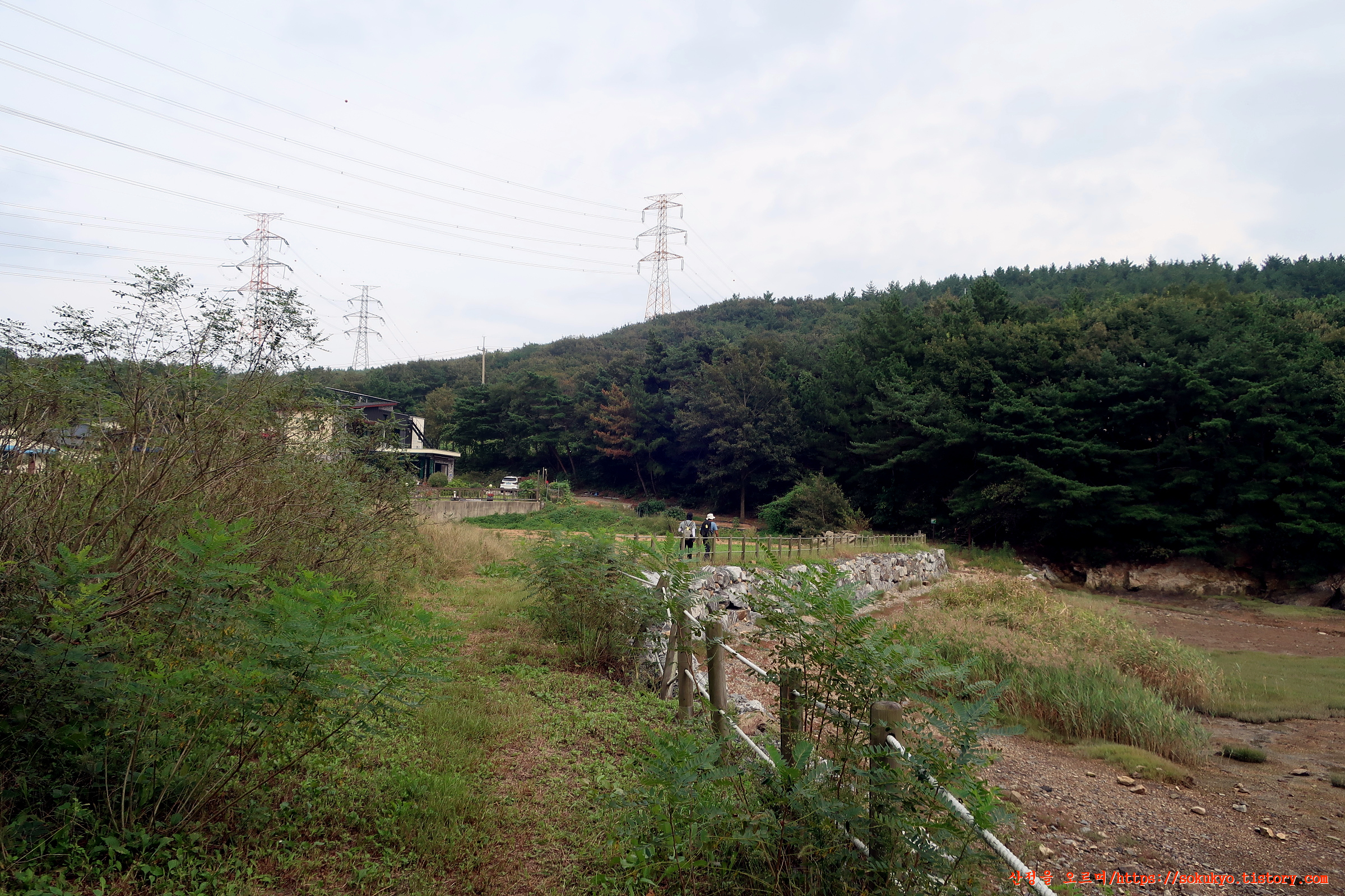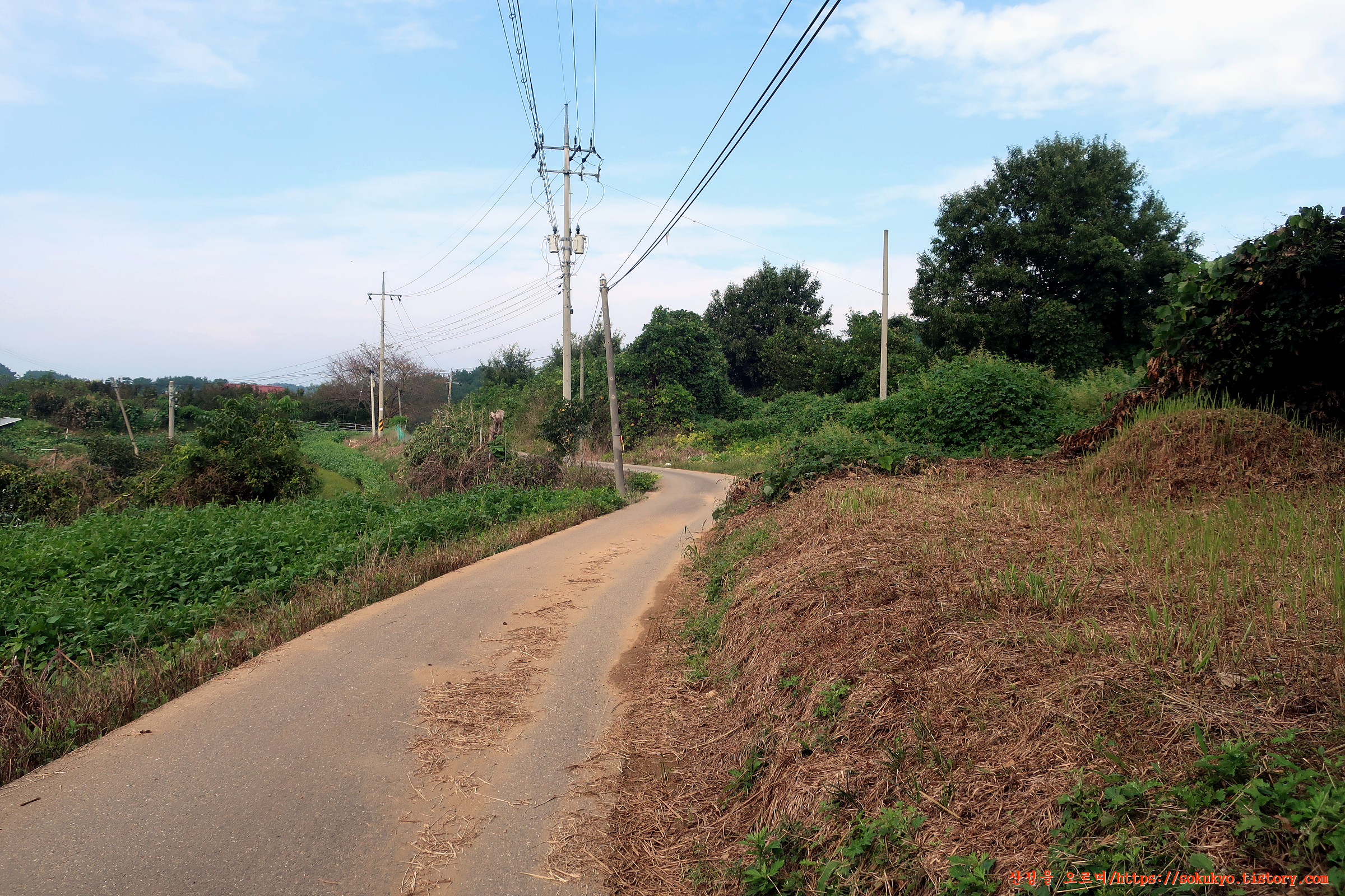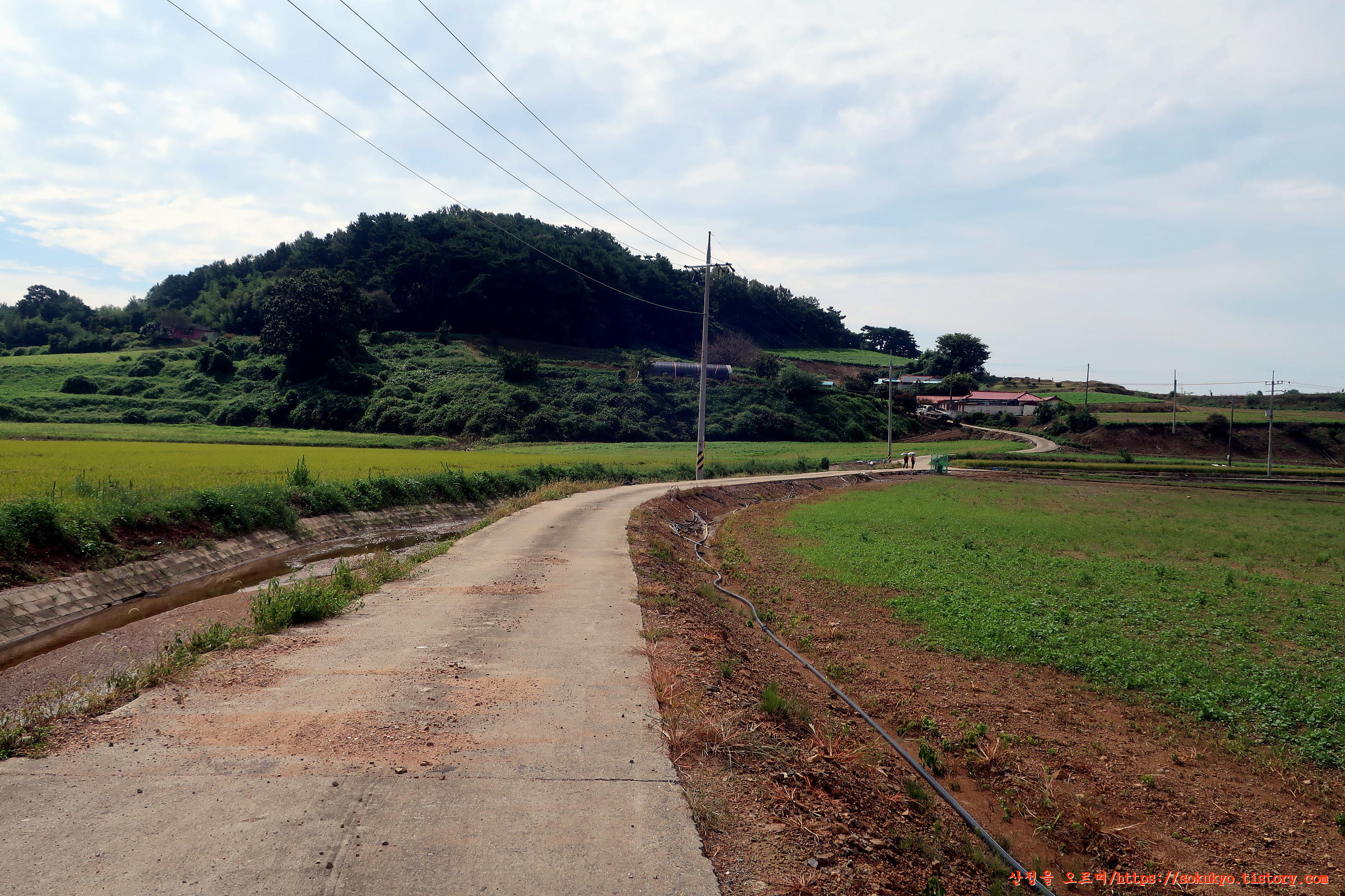 농로 끝까지 진행한후에 우측으로 휘어져 산 아래로 이어지는 농로를 따라 걷게 됩니다.