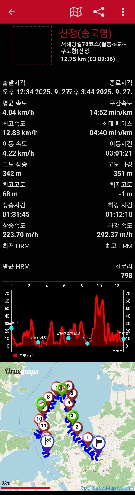 - 76코스 : 12.75km/3시간10분(12:34~15:44)
