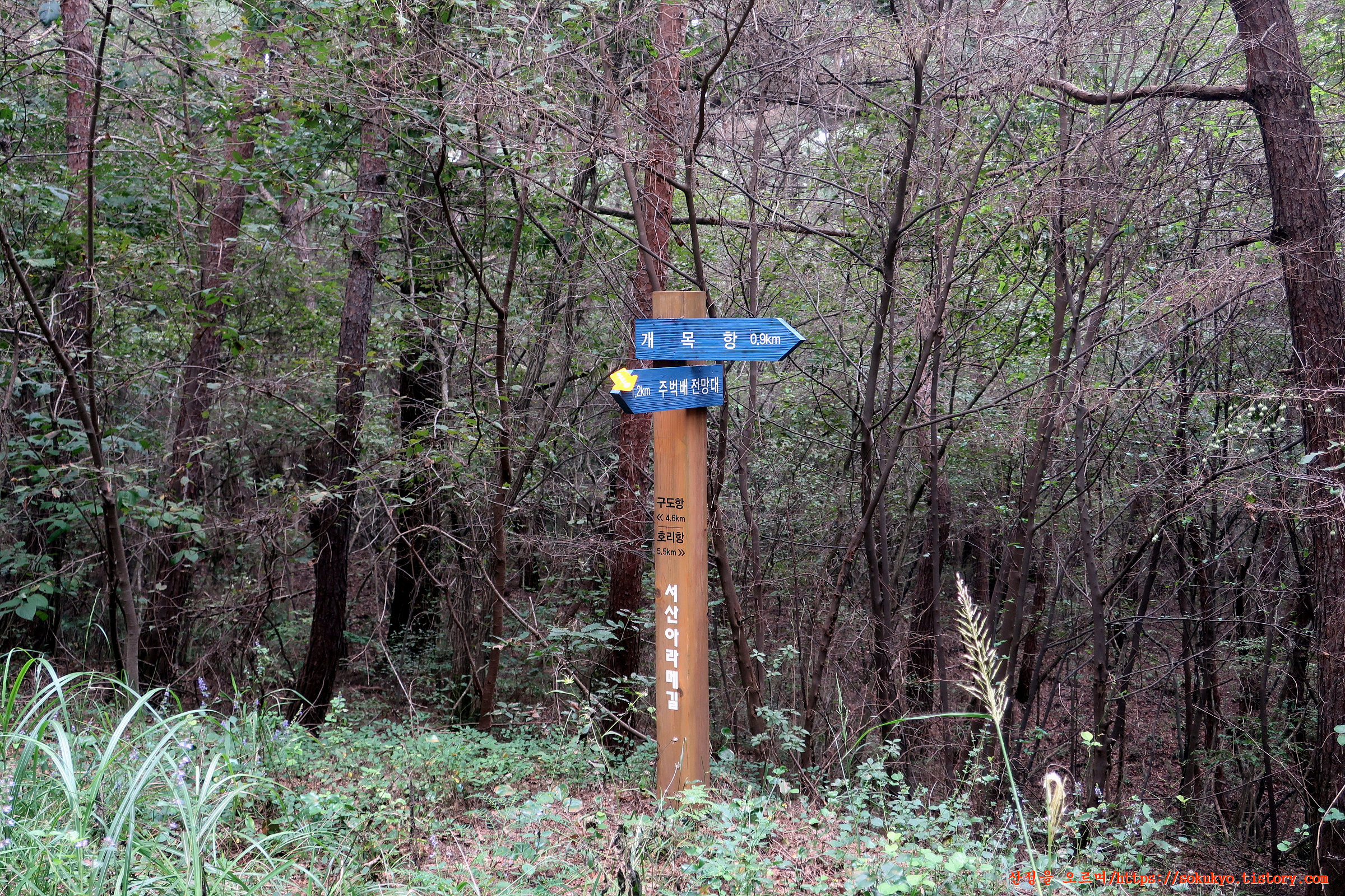 임도를 내려서면 서산아라메길 이정표를 만나고