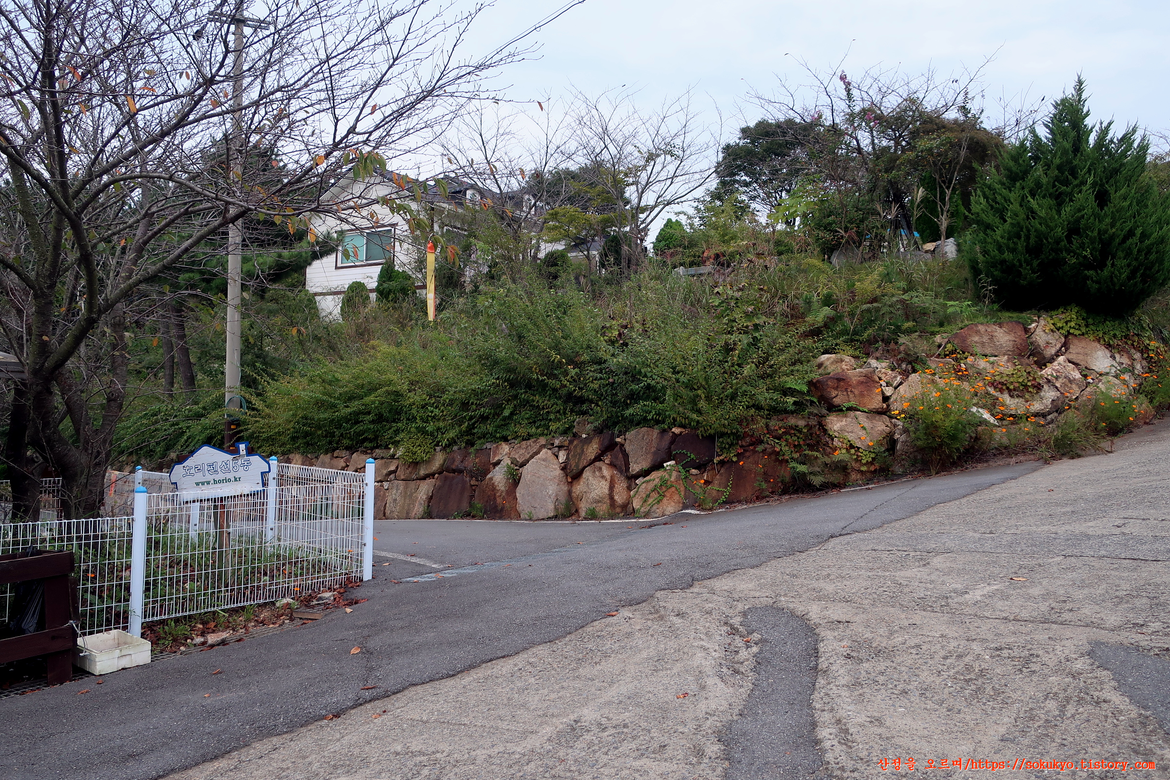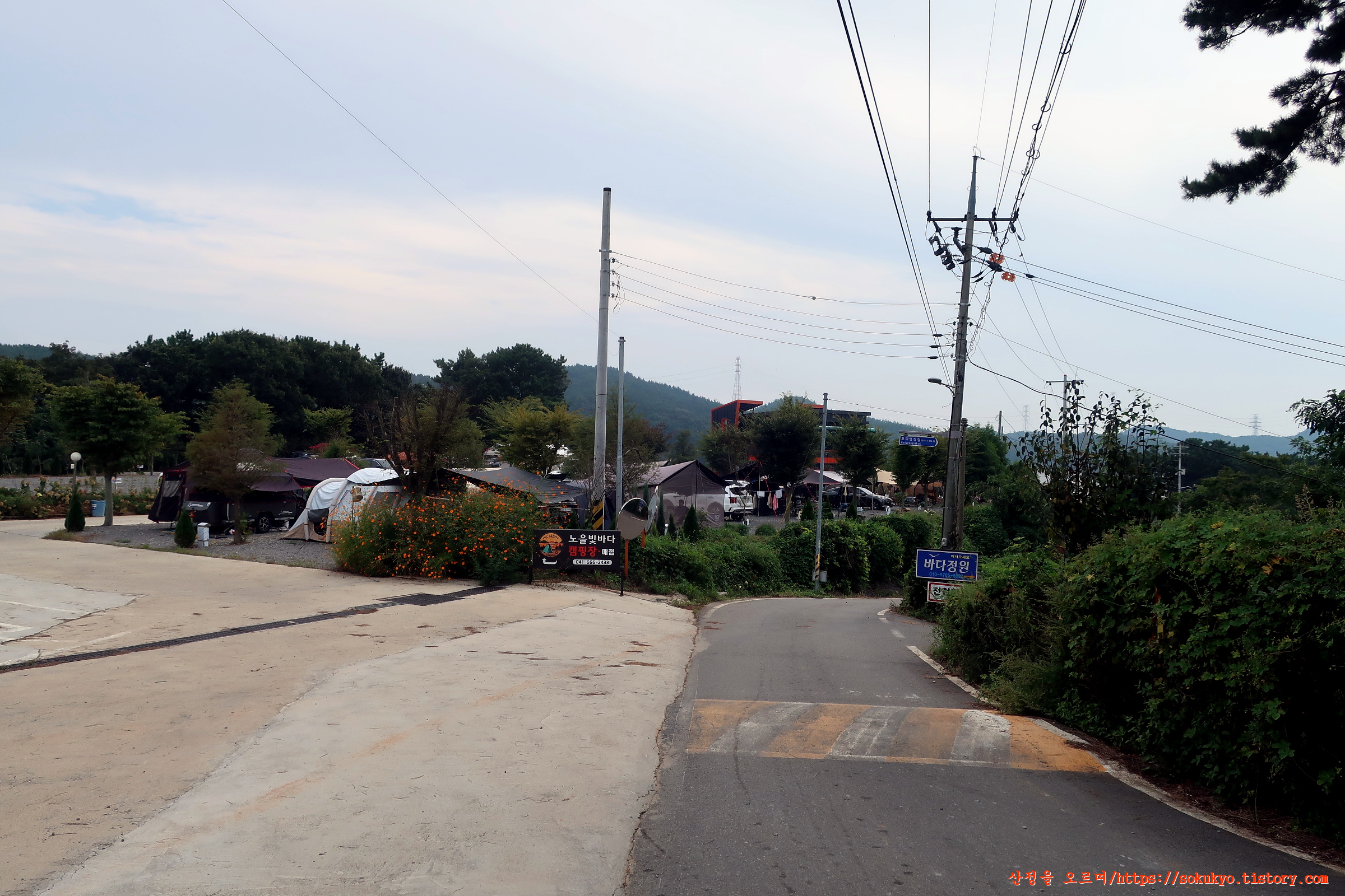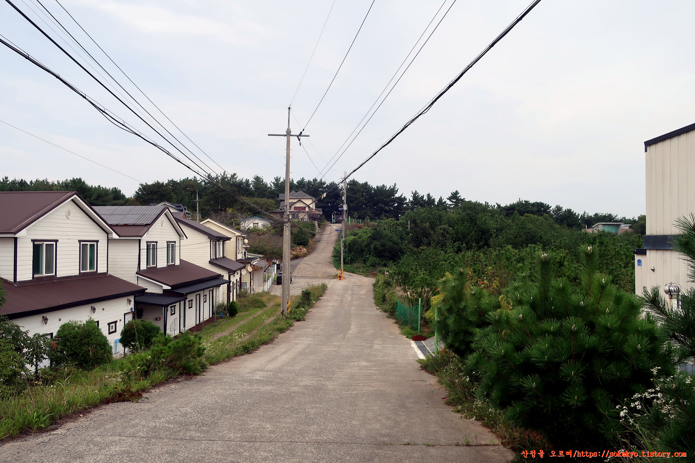 좌측으로 펜션촌을 보면서 언덕길을 내려갑니다.
