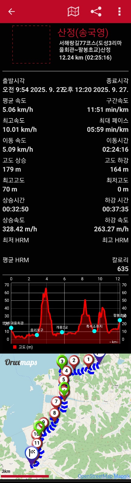 - 77코스 : 12.24km/2시간25분(09:54~12:20)