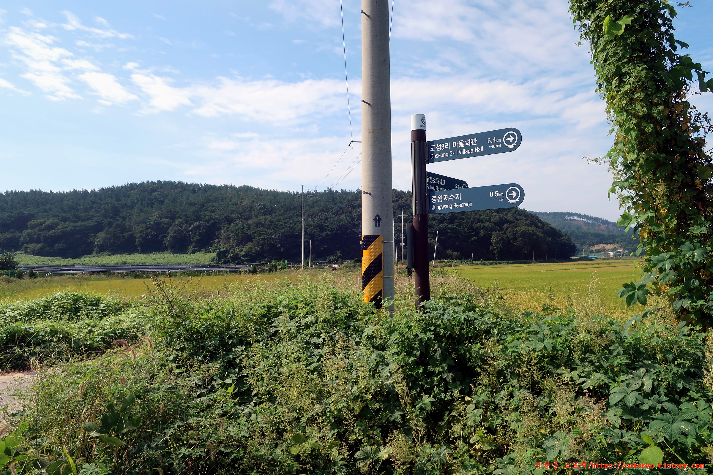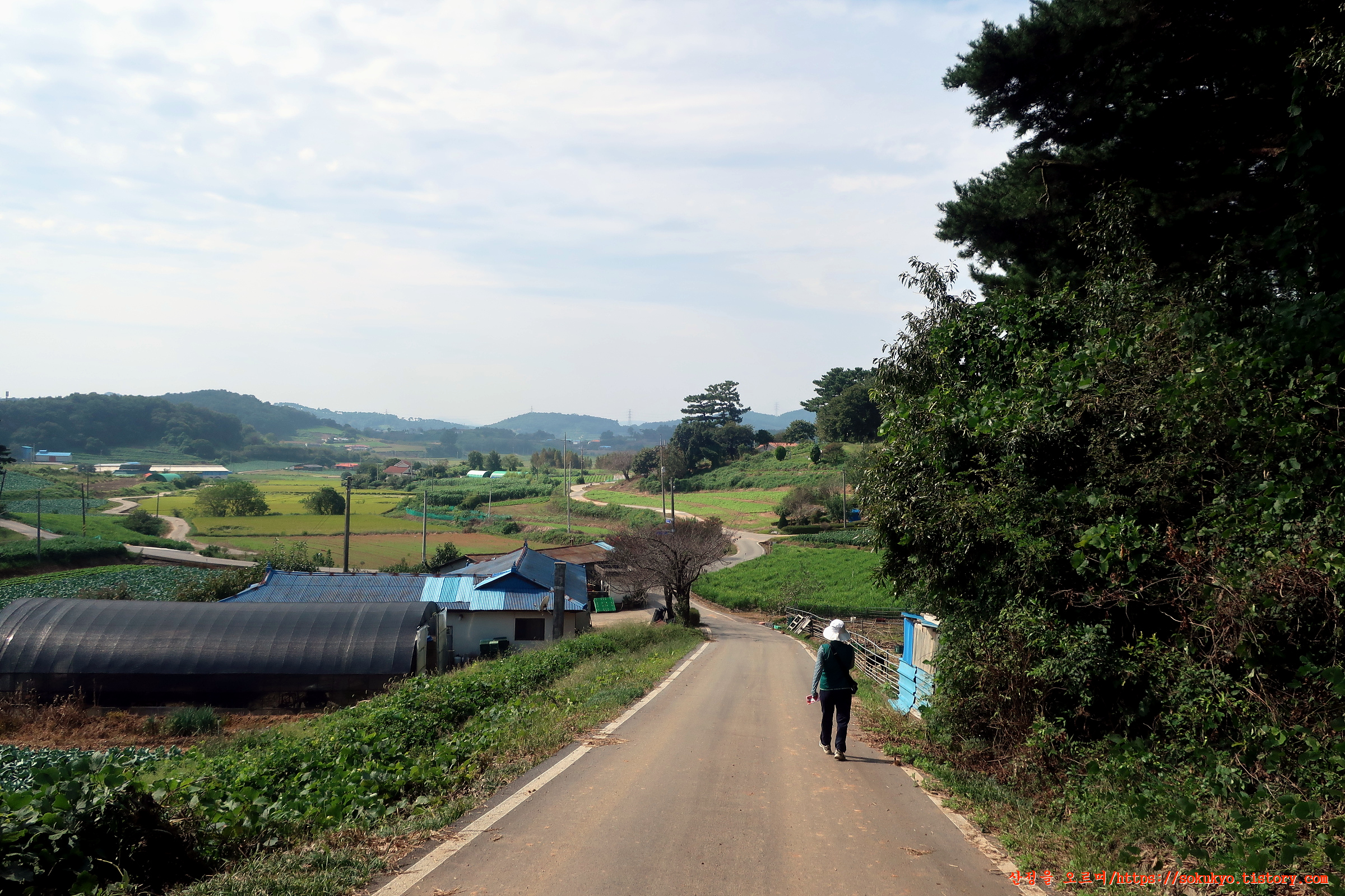 서해랑길77코스의 종점인 도성3리마을회관앞에서 역방향으로 진행 하여