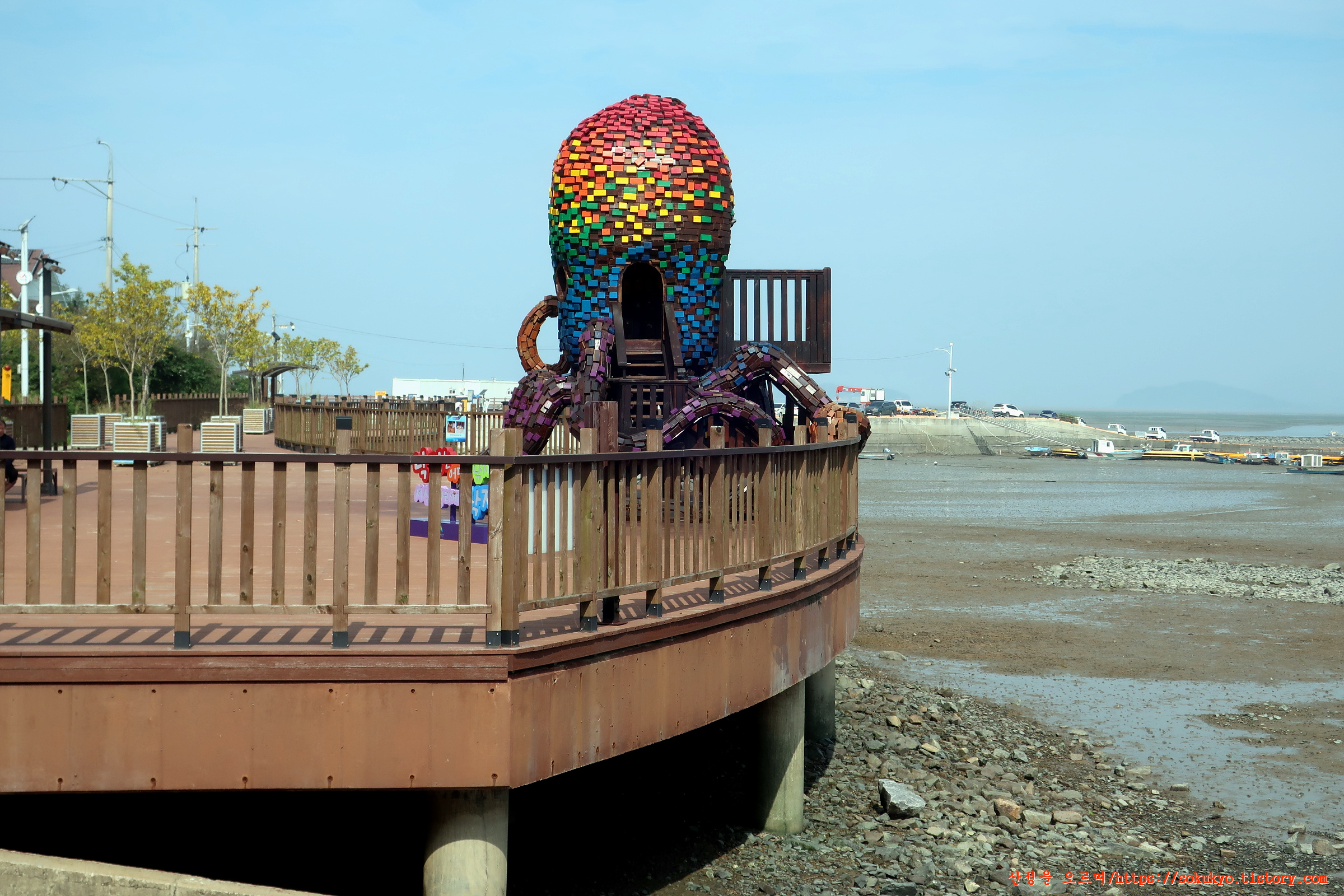 '중리포구'에 있는 문어 조형물의 전망데크에서