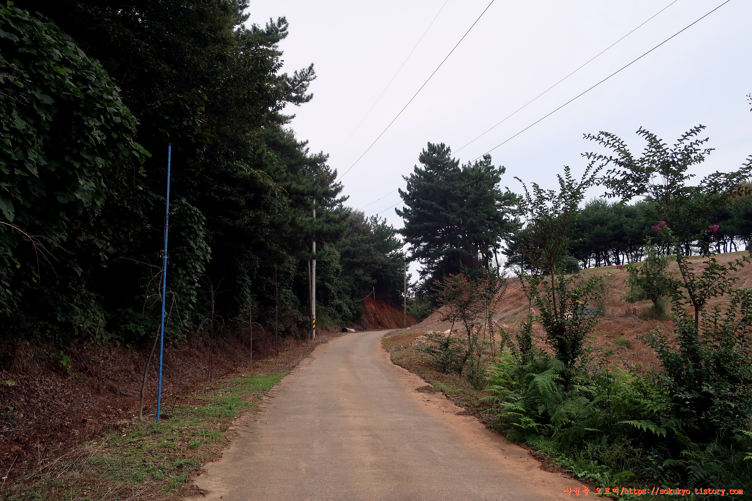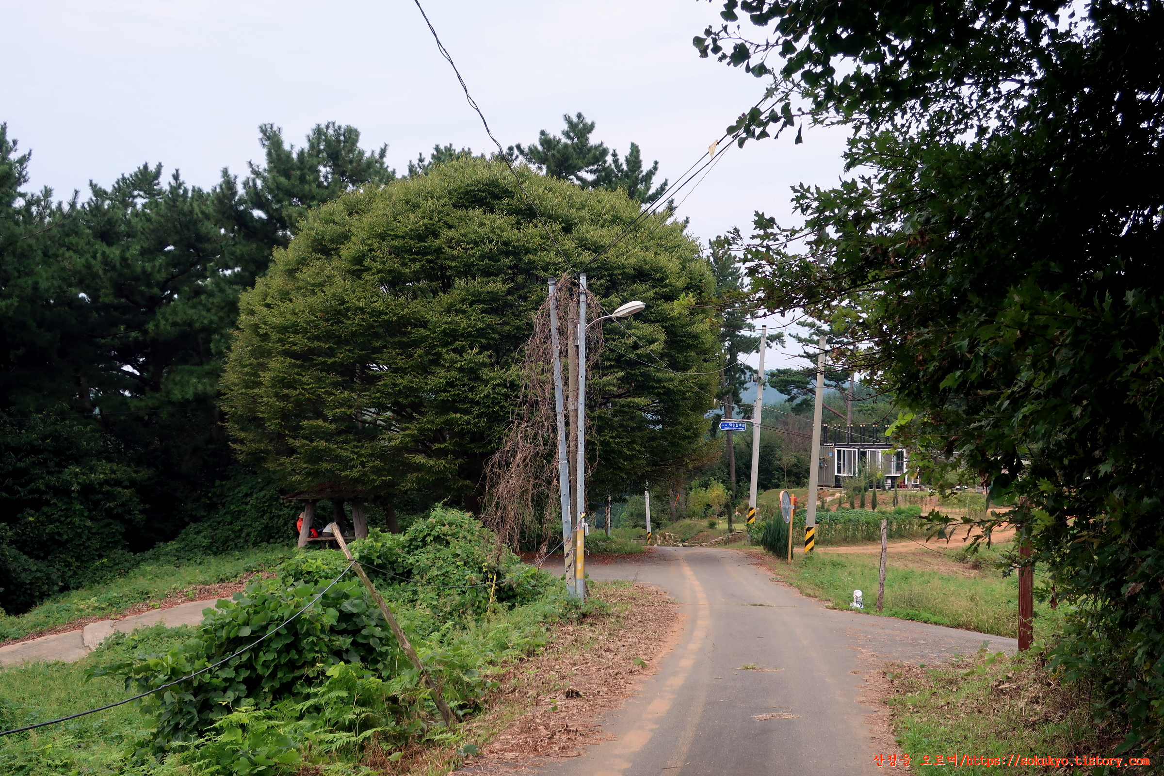 중리 포구에서 2차선 도로를 따라 앞쪽에 보이는 '솔모루 고개' 방향으로 오릅니다.