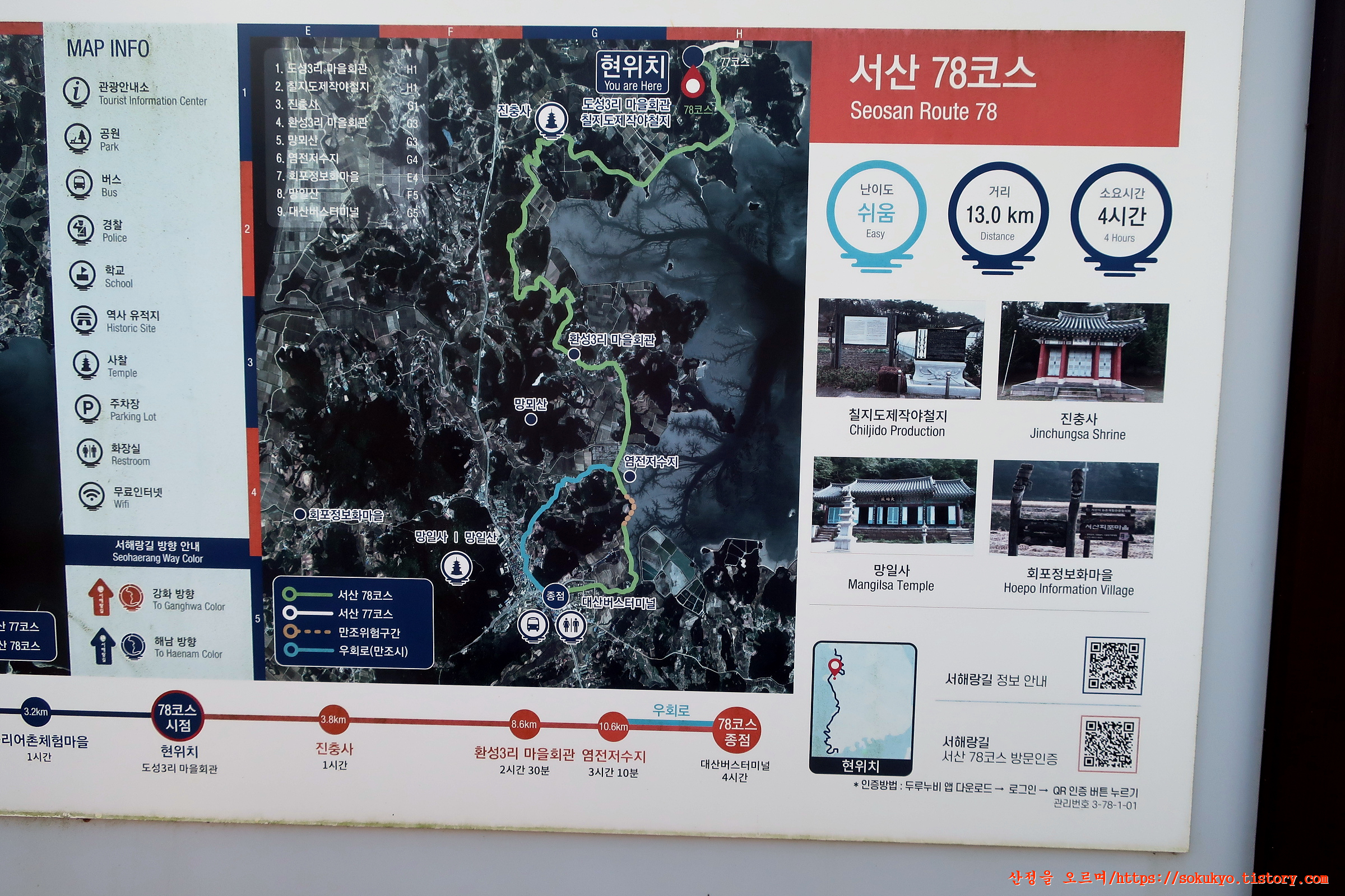 - 77코스 시점 : 충남 서산시 지곡면 도성리 423-4(도성3리 버스정류장부근)