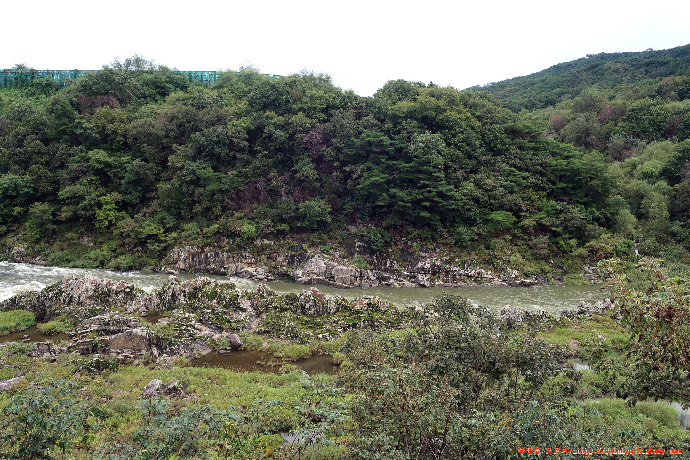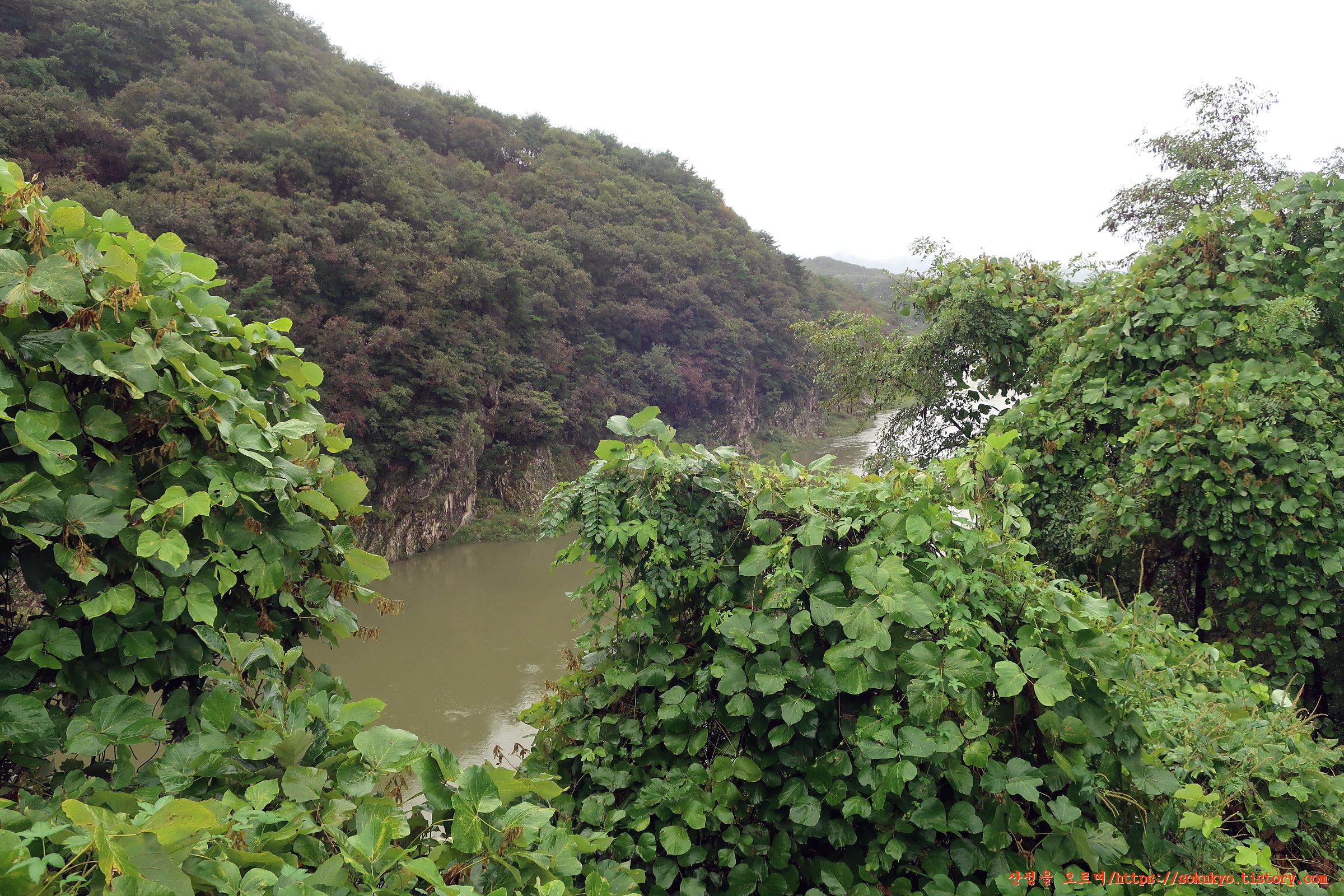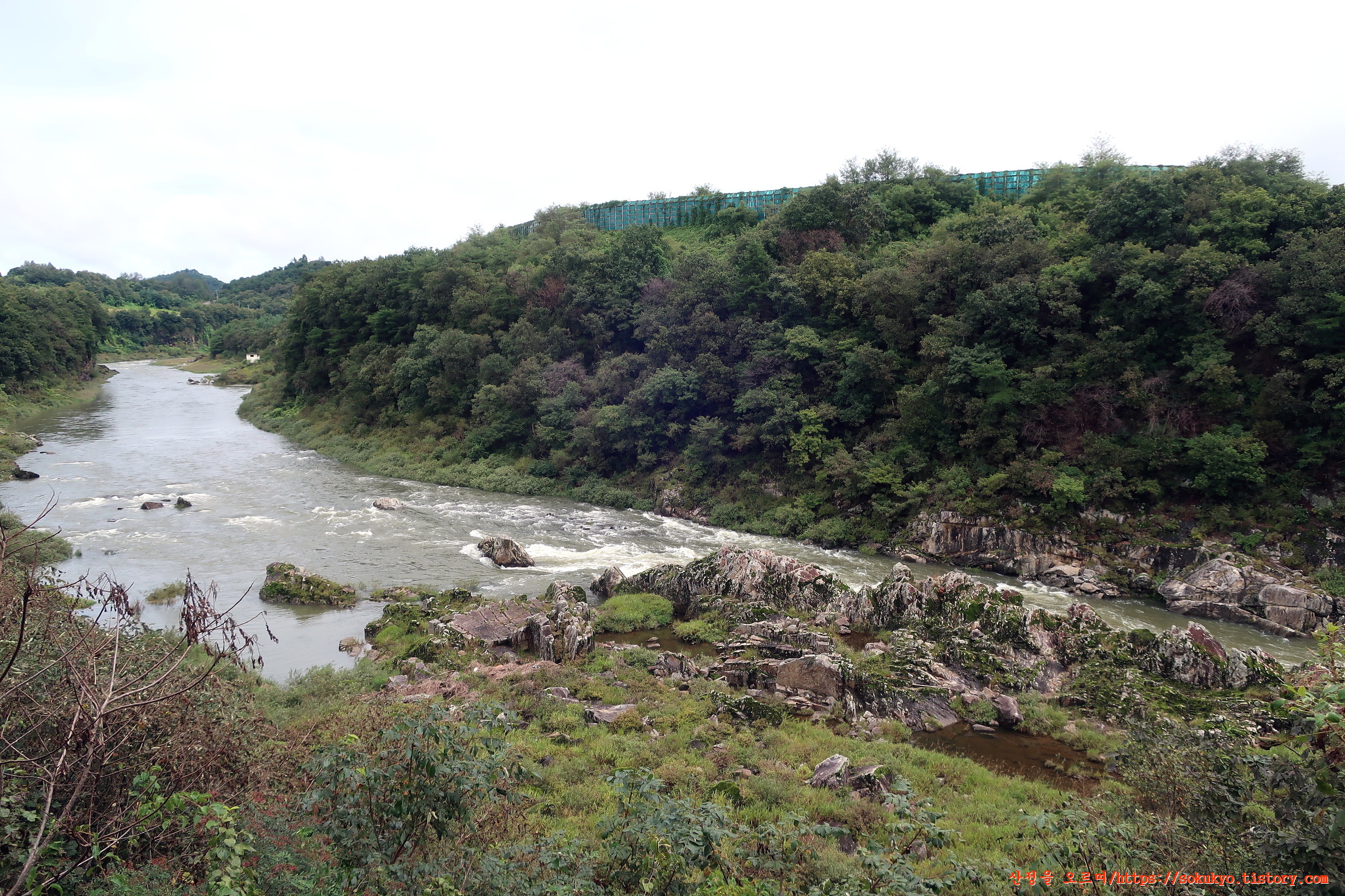 나무들이 가려 잘보이지 않던 한탄강이 좌측으로 내려다 보이는 곳을 지납니다.
