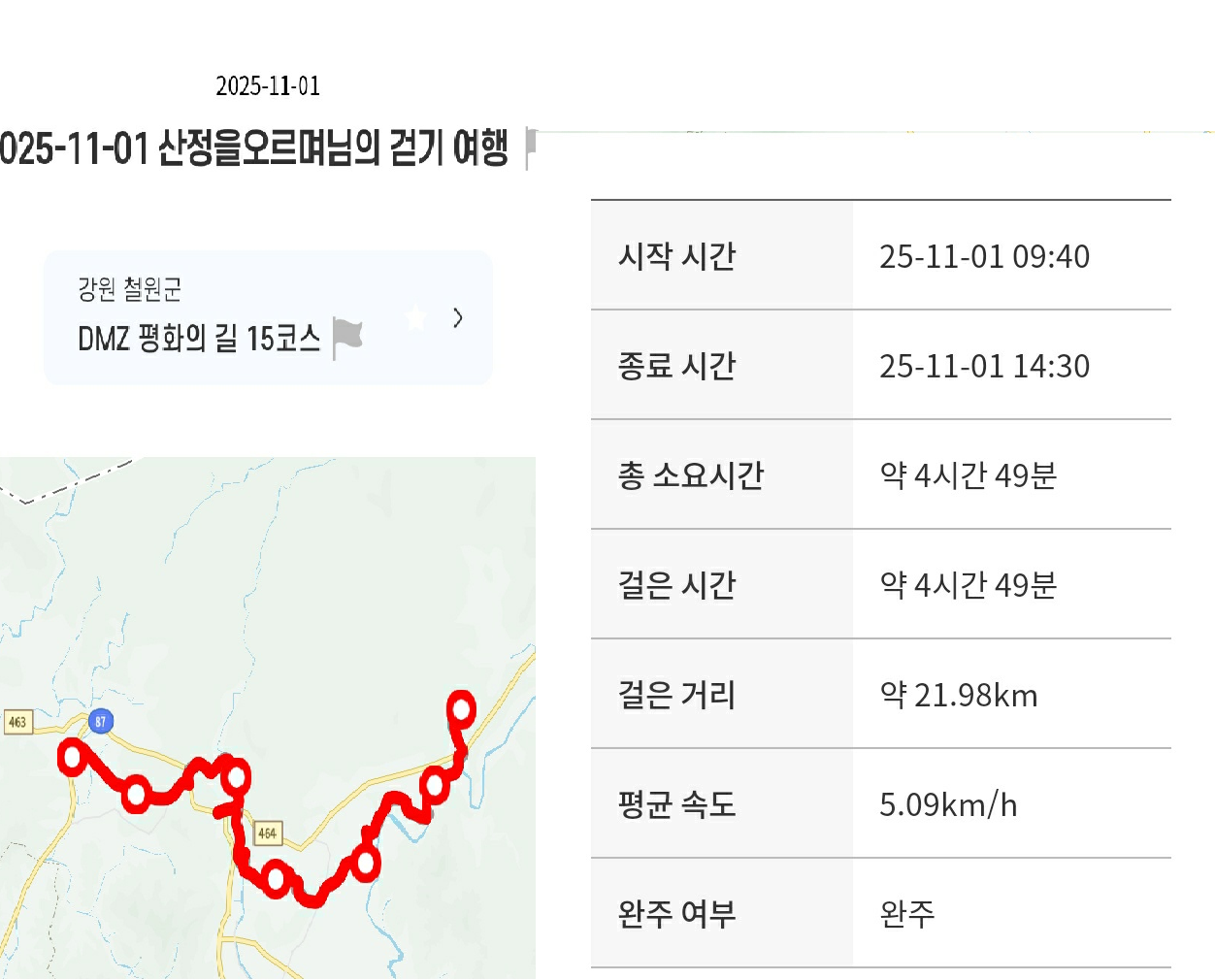 ♣ 트래킹 일시 : 2025년11월01일.(토). 날씨 : 맑음