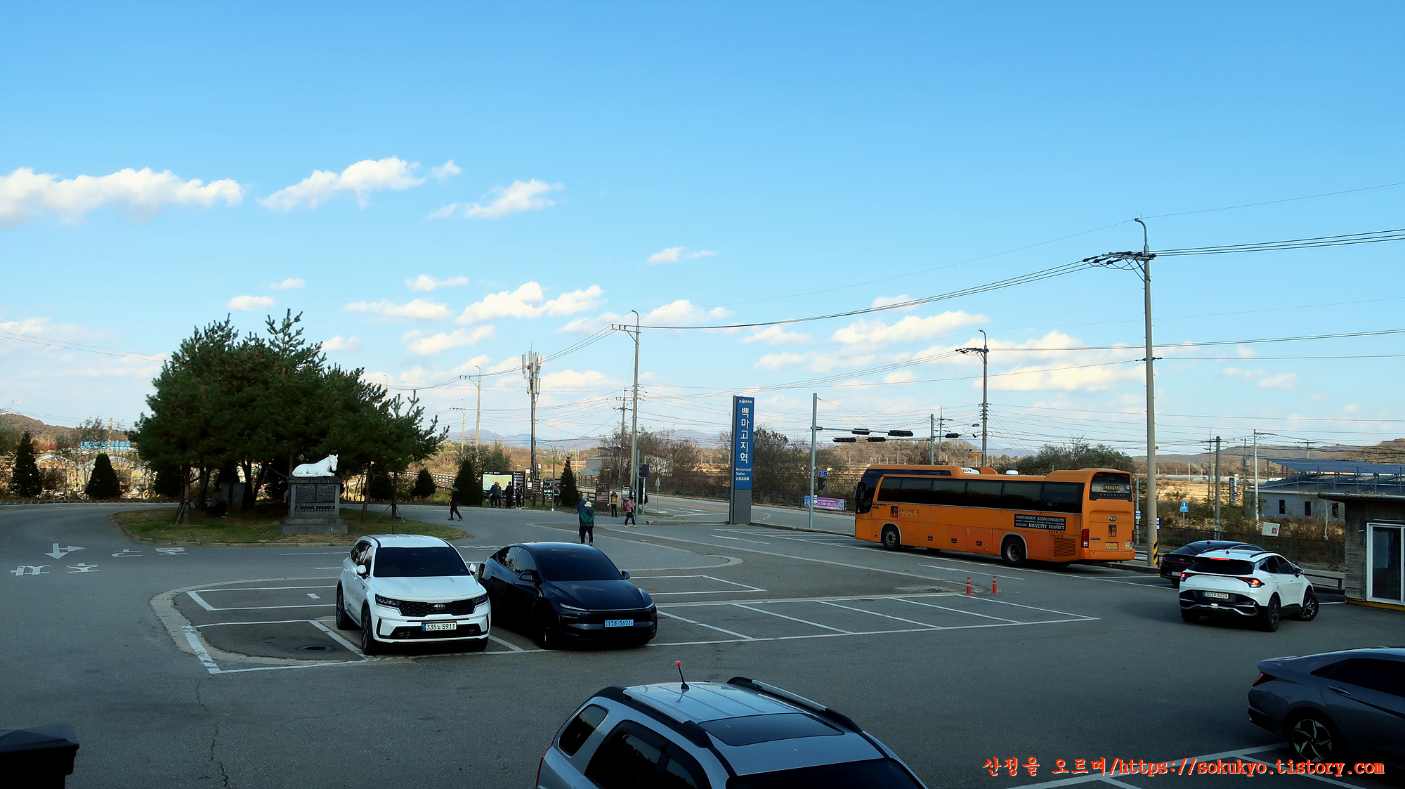 DMZ두루미 평화타운에서 사진을 찍은후 버스로 칠만암 입구까지 이동하고