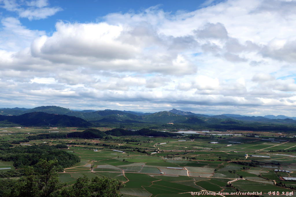 소이산 정상에서 바라본 철원평야와 멀리 북녘의 오성산 풍경