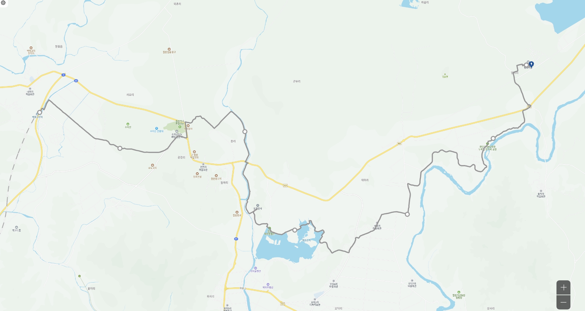 - 시점(DMZ두루미평화타운) : 강원도 철원군 동송읍 양지2길 15-19