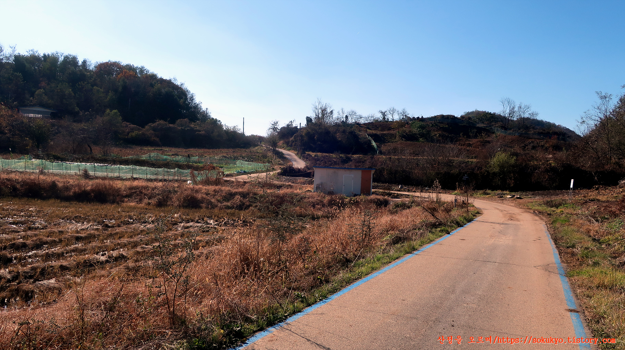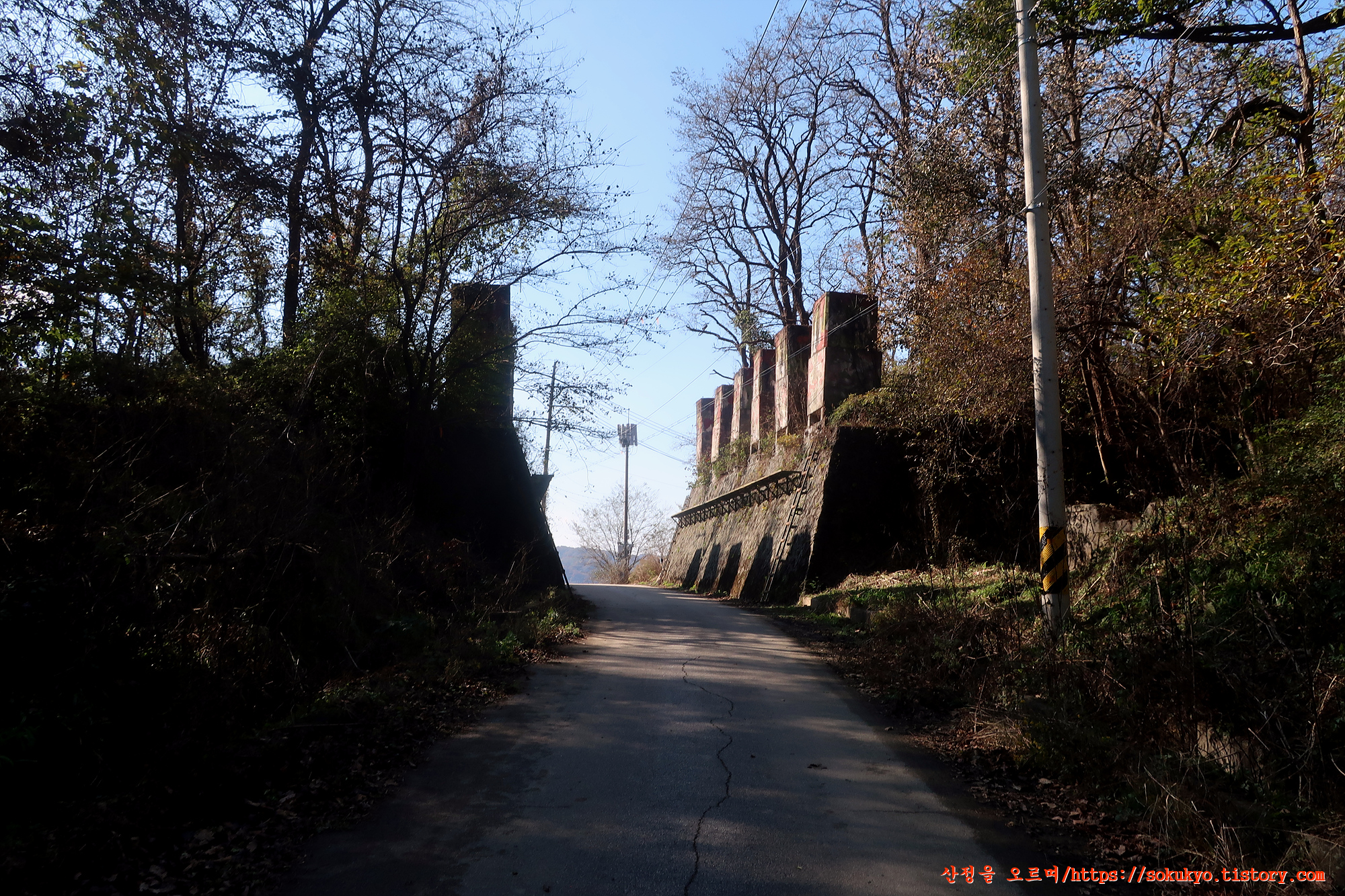 소이산 오르는 좌측 포장도로를 따라 나즈막한 고갯길을 넘어갑니다.