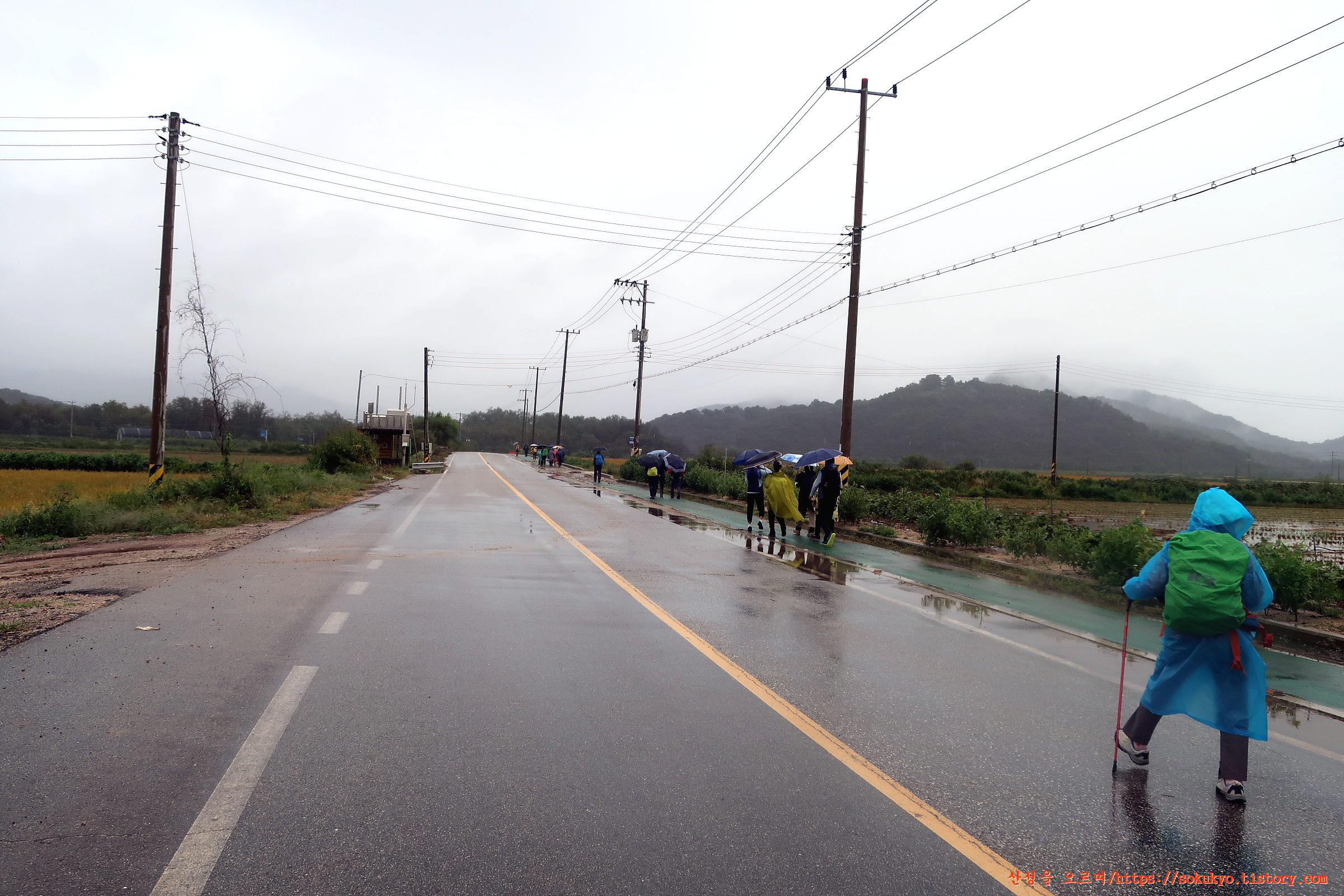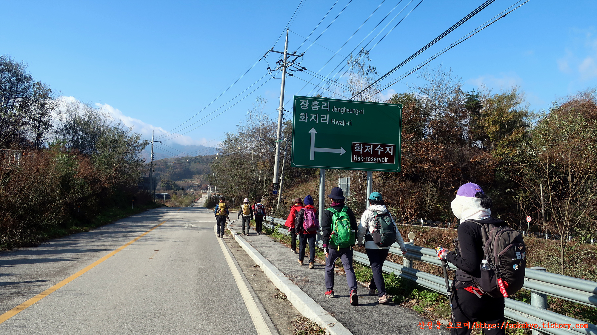 16-1코스에 불참했거나 또 버스를 타지 않을 회원은 걷기에 나섭니다.