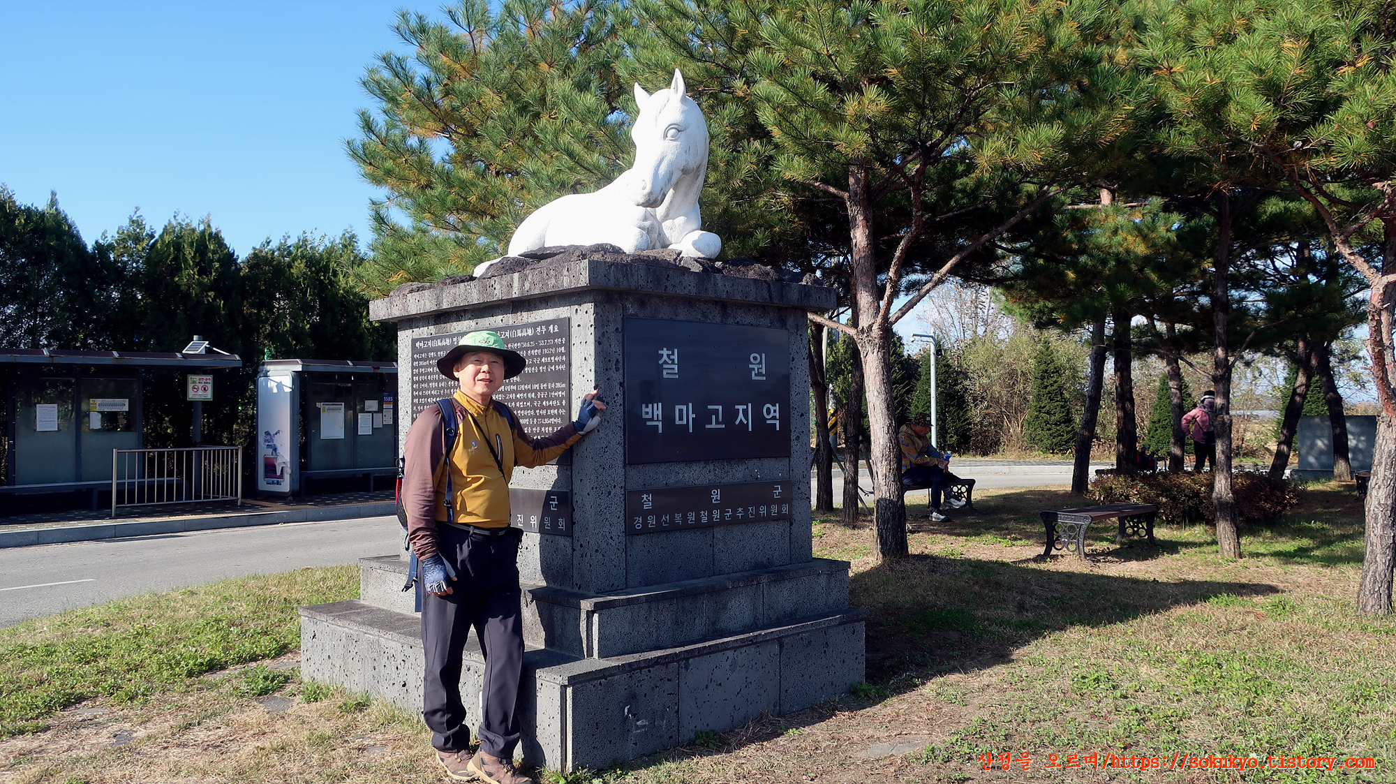 철원 백마고지역 백마상 앞에서