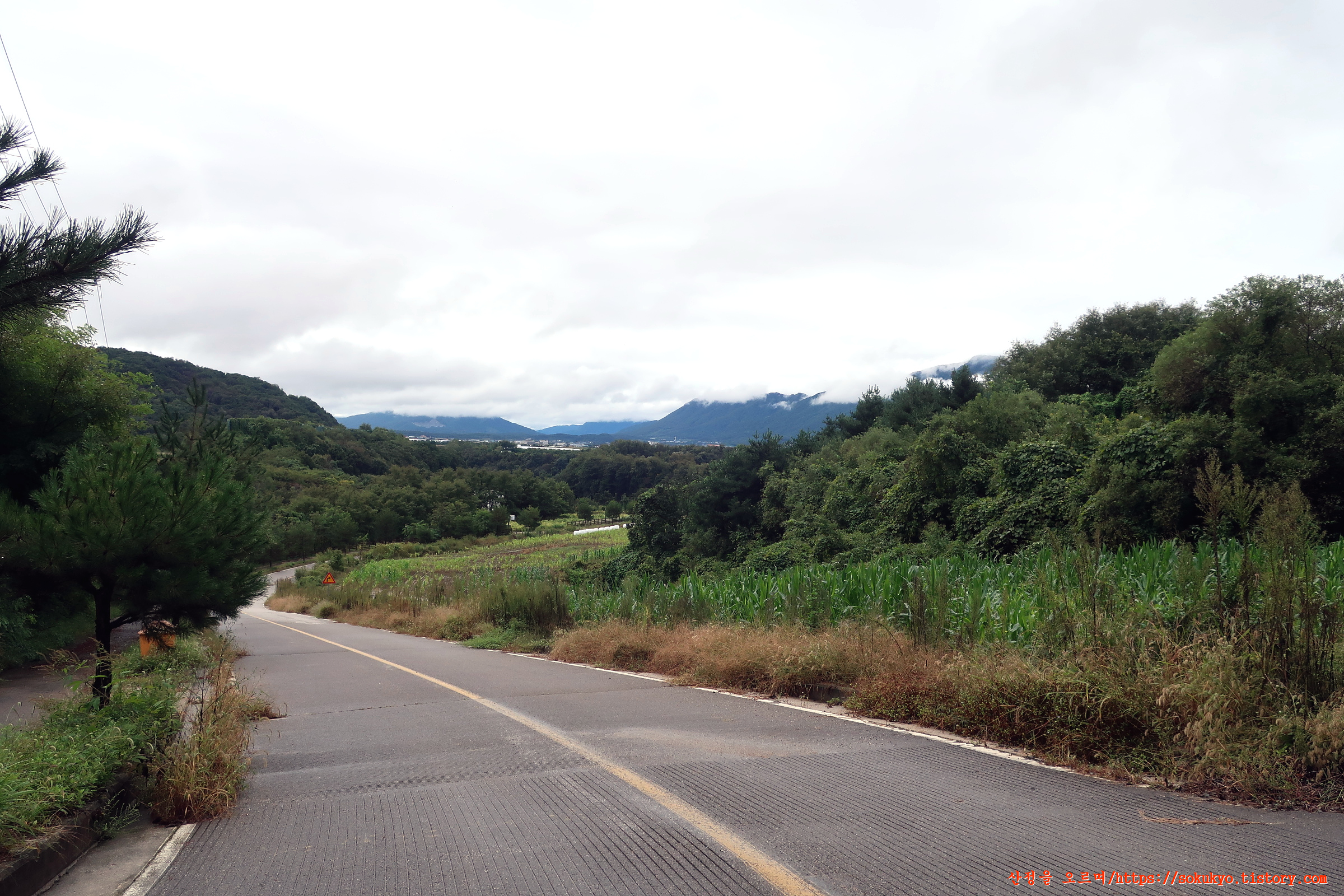사요리의 포장도로 좌측으로 보이는 고대산▲(832m) 풍경
