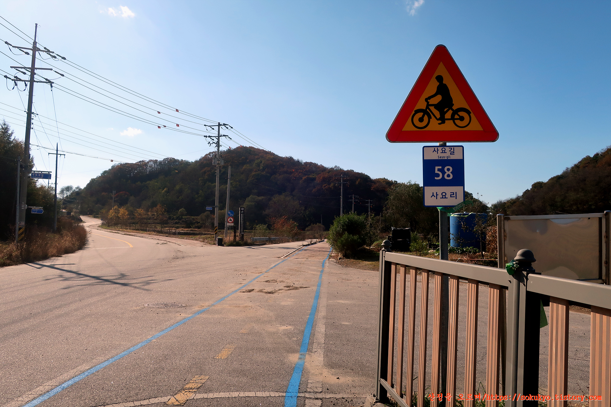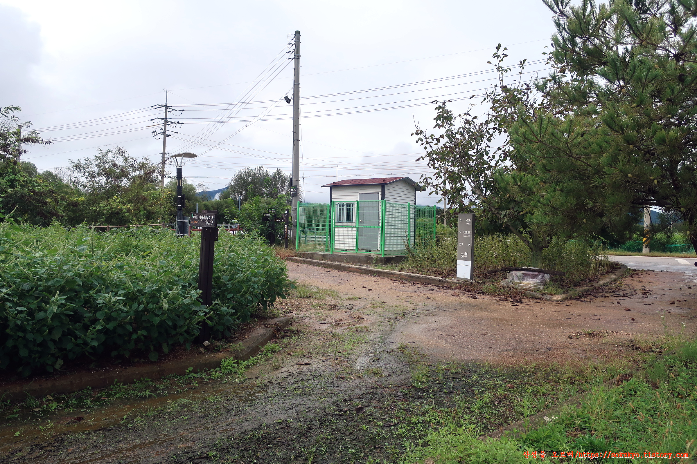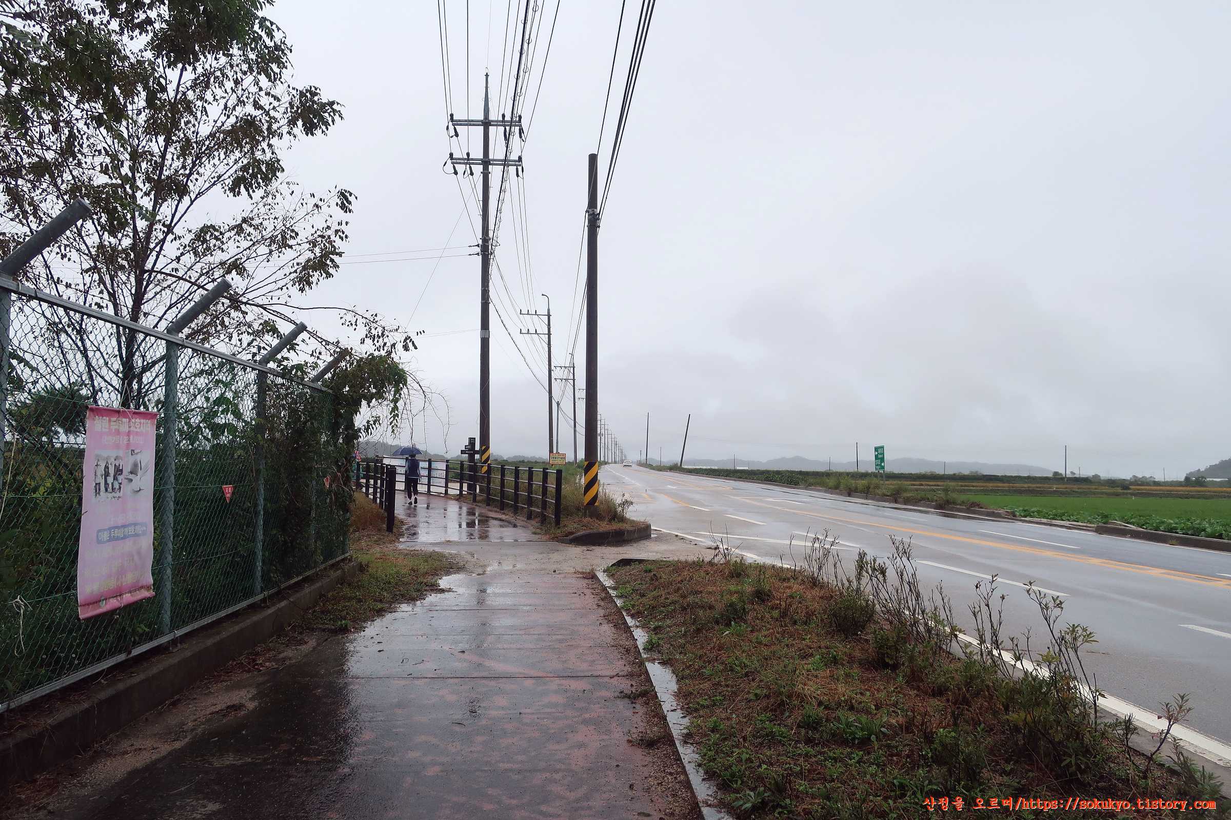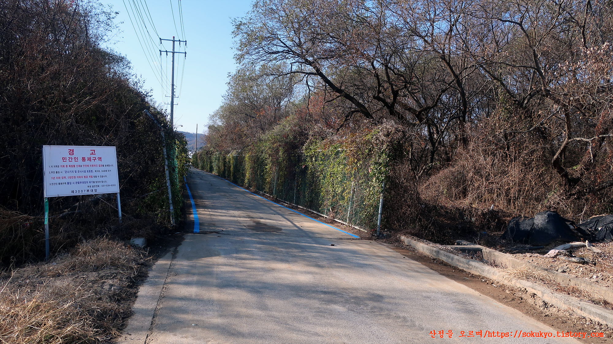 포장도로(사요길) 양옆으로 '지뢰' 표찰이 붙어 있는 곳을 지납니다.